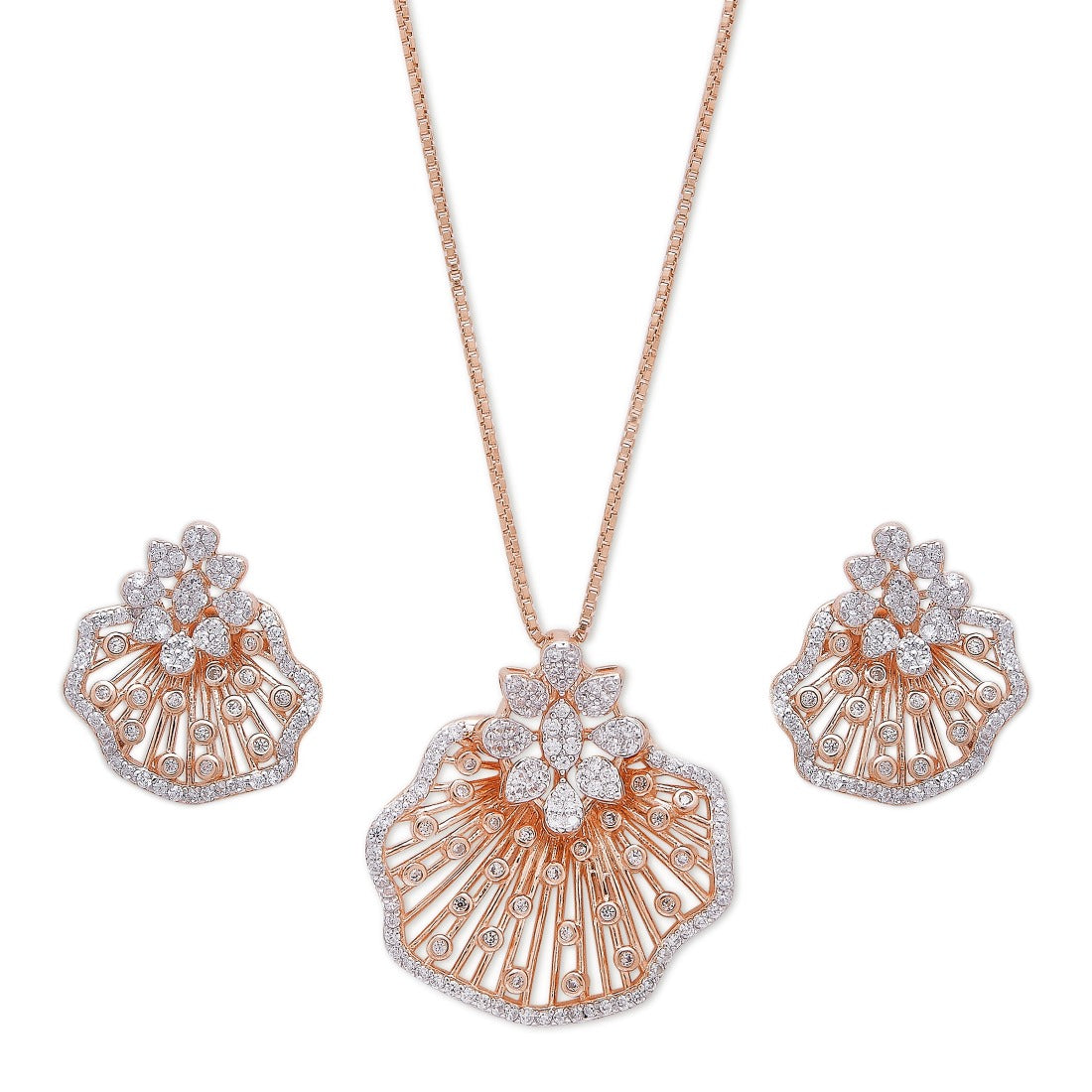 Product Description:- Embrace the timeless beauty of our Rosy Bloom Ensemble, a captivating 925 Sterling Silver Jewelry Set with exquisite rose gold-plated detailing and delicate flower patterns. This enchanting ensemble effortlessly combines elegance with nature-inspired charm. Each piece is meticulously crafted to enhance your femininity and style, making it a perfect accessory for any occasion. Let the Rosy Bloom Ensemble adorn you with grace and sophistication, bringing a touch of floral delight to your every look.