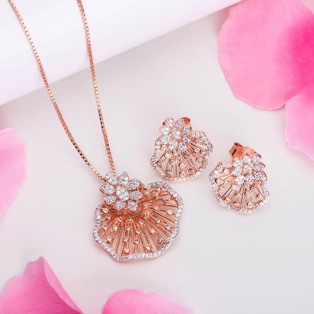 Rosy Bloom Ensemble 925 Sterling Silver Rose Gold-Plated Flower Jewelry Set