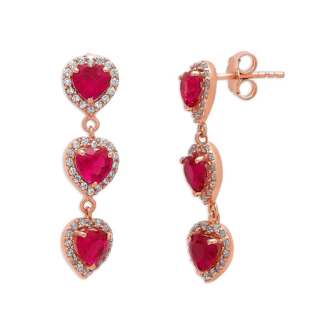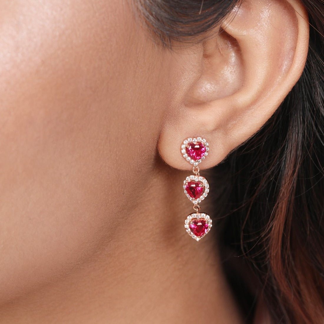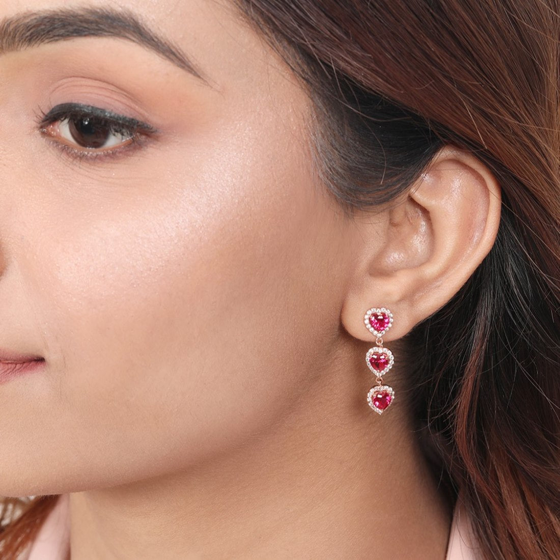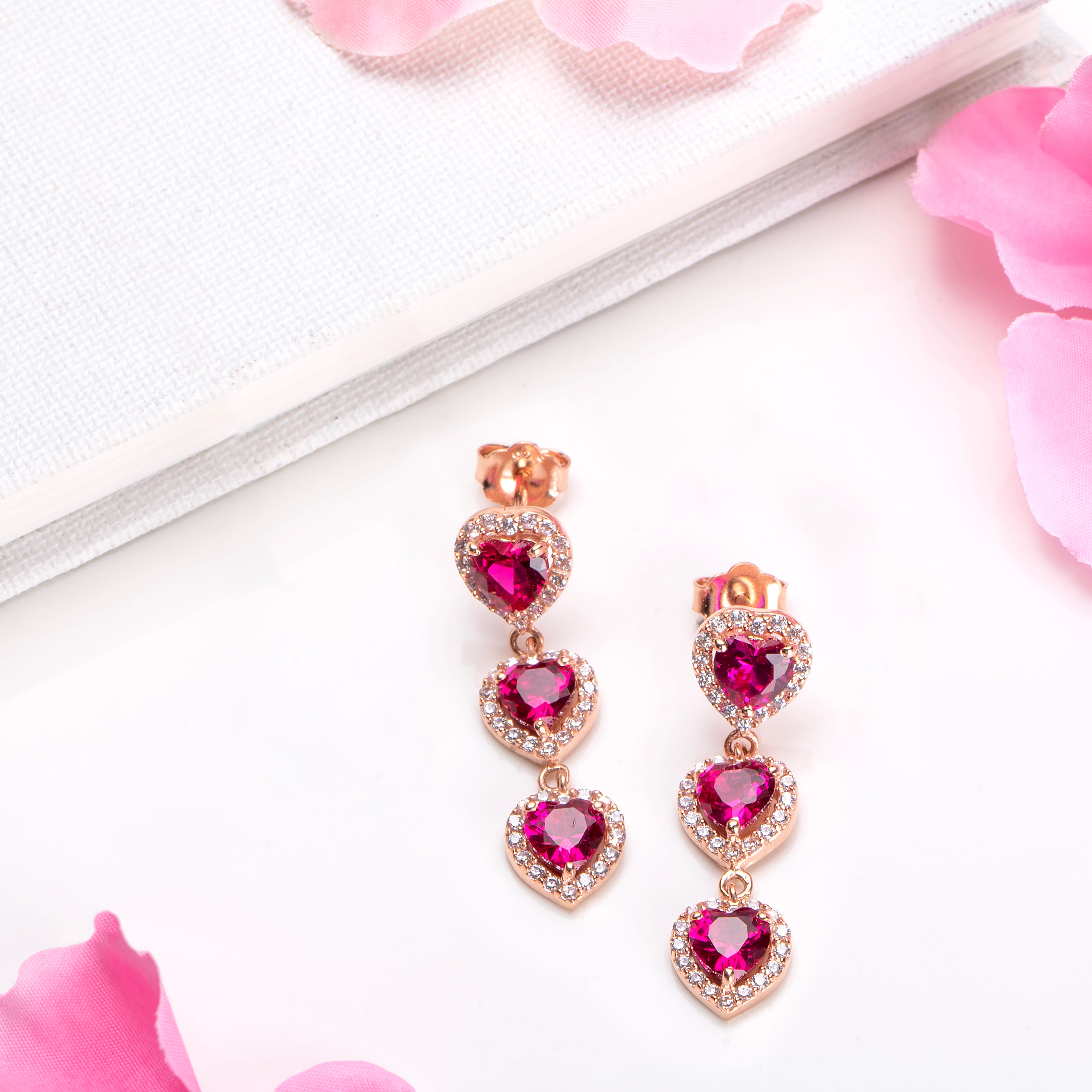 Product Description:- Delight in the romantic allure of our "Rosy Love" 925 sterling silver earrings, plated in captivating rose gold for an exquisite finish. Each earring features a charming heart-shaped design embellished with shimmering cubic zirconia gemstones, radiating with elegance and sentiment. The delicate craftsmanship and timeless appeal make these earrings a perfect expression of love and affection, whether as a gift for a loved one or a special treat for yourself. Elevate any ensemble with their feminine grace and undeniable beauty, adding a touch of romance to every moment. Indulge in the enchanting allure of our "Rosy Love" earrings and let your style shine with heartfelt sophistication.