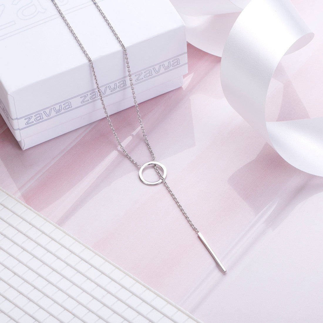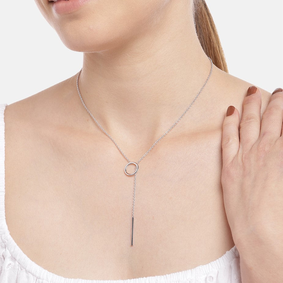 Round Drop Rhodium Plated 925 Sterling Silver Necklace