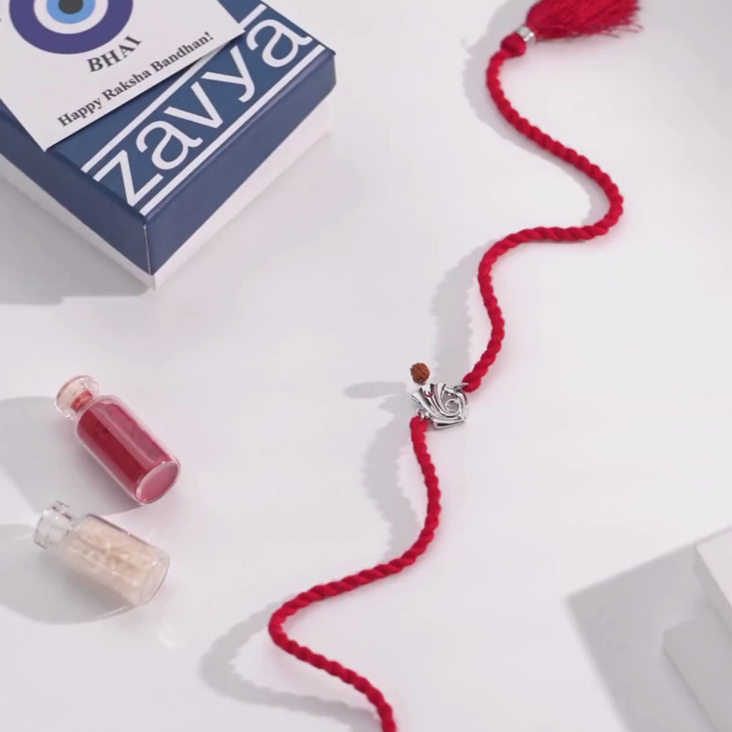 Sacred Ganesh Ji With Rudraksh Rhodium-Plated Sterling Silver Thread Rakhi