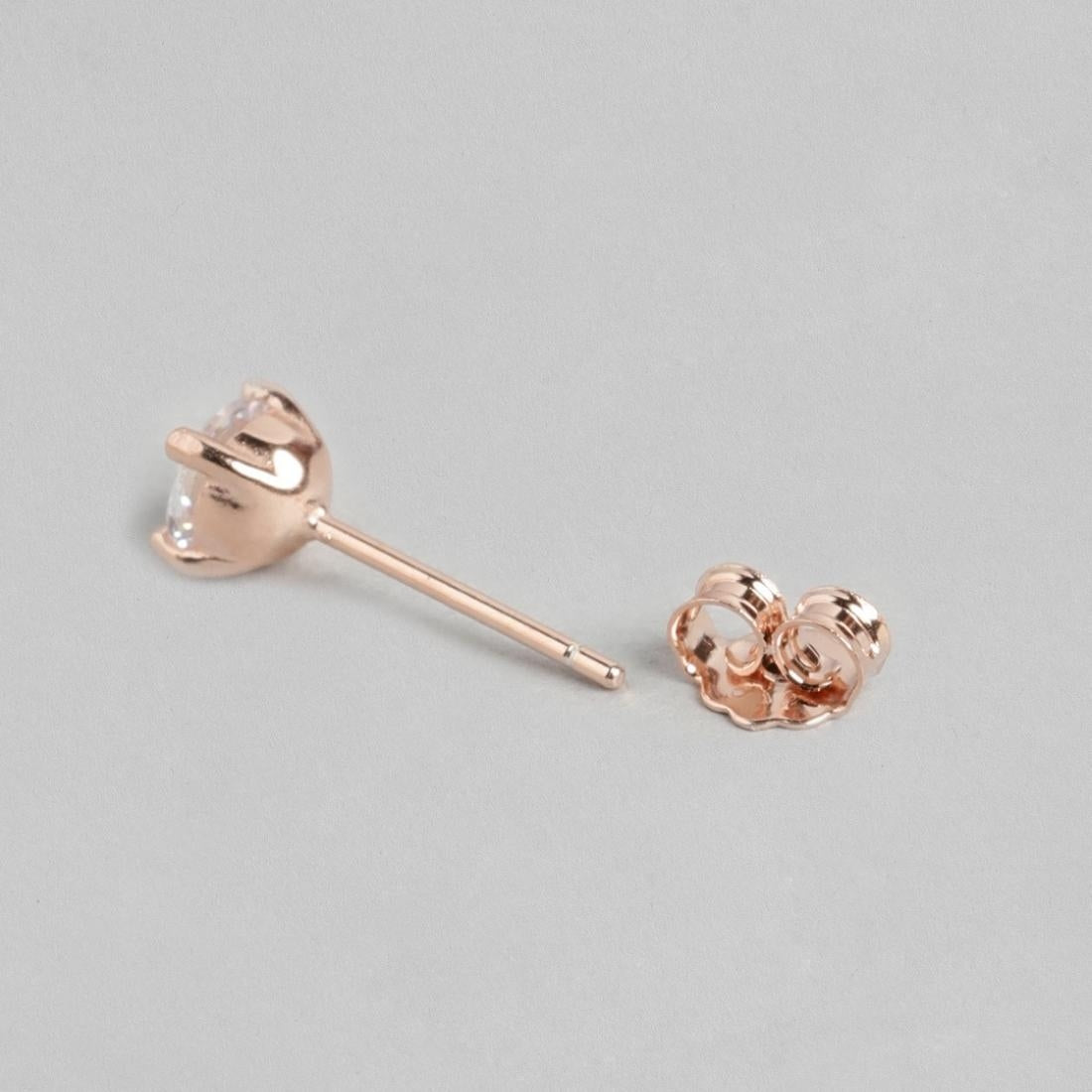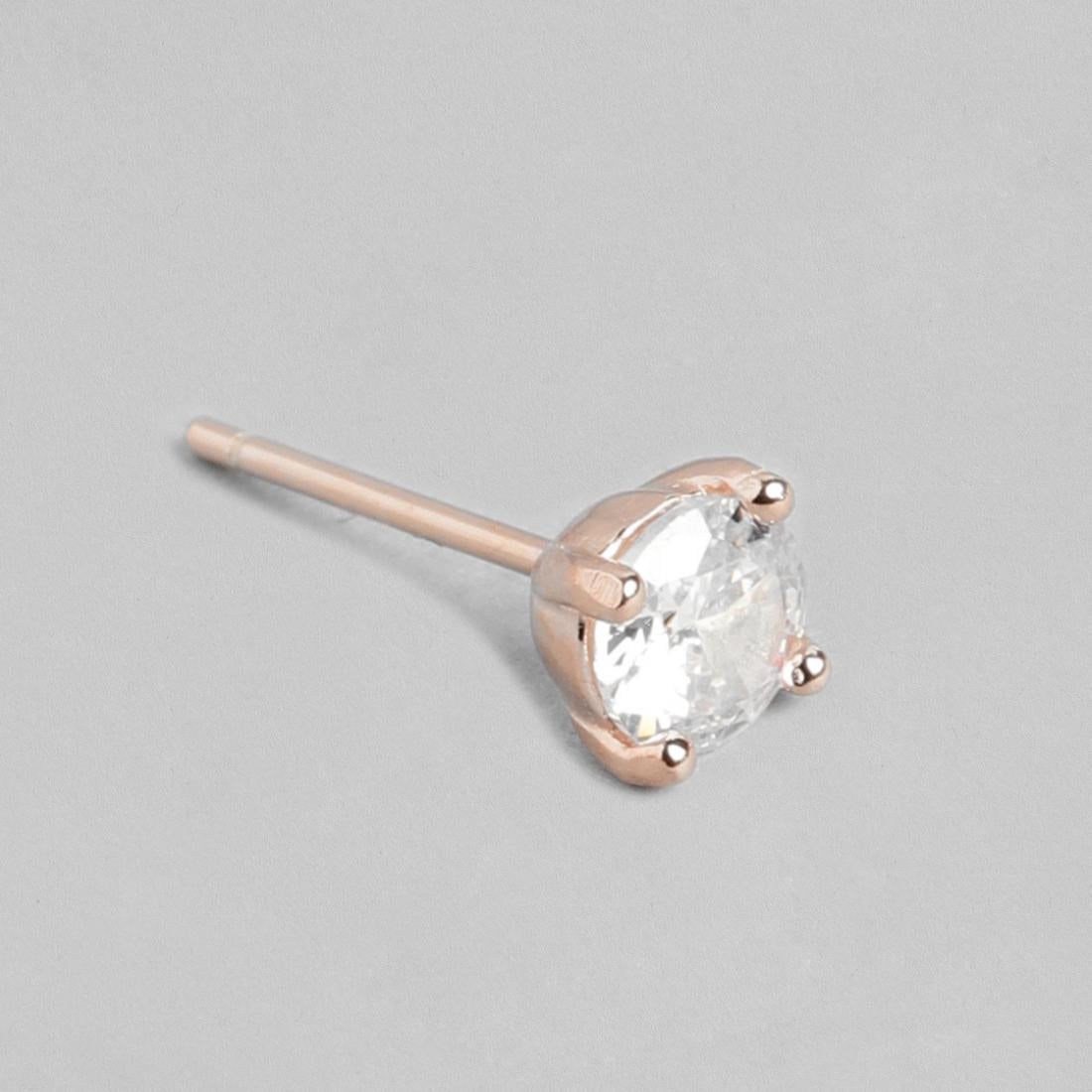 Sensational Solitaire 925 Silver Earrings In Rose Gold