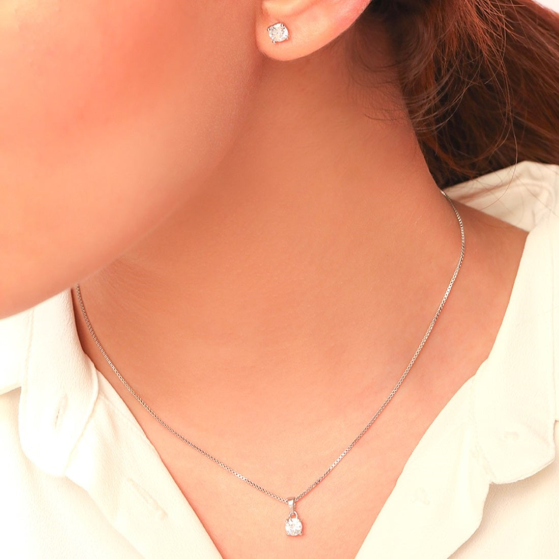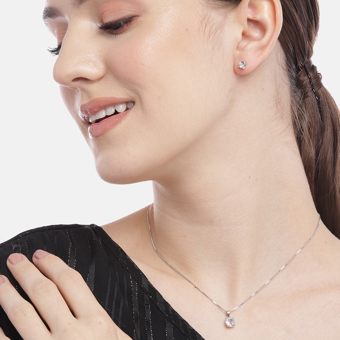 Sensational Solitaire Rhodium Plated 925 Sterling Silver Jewellery Set