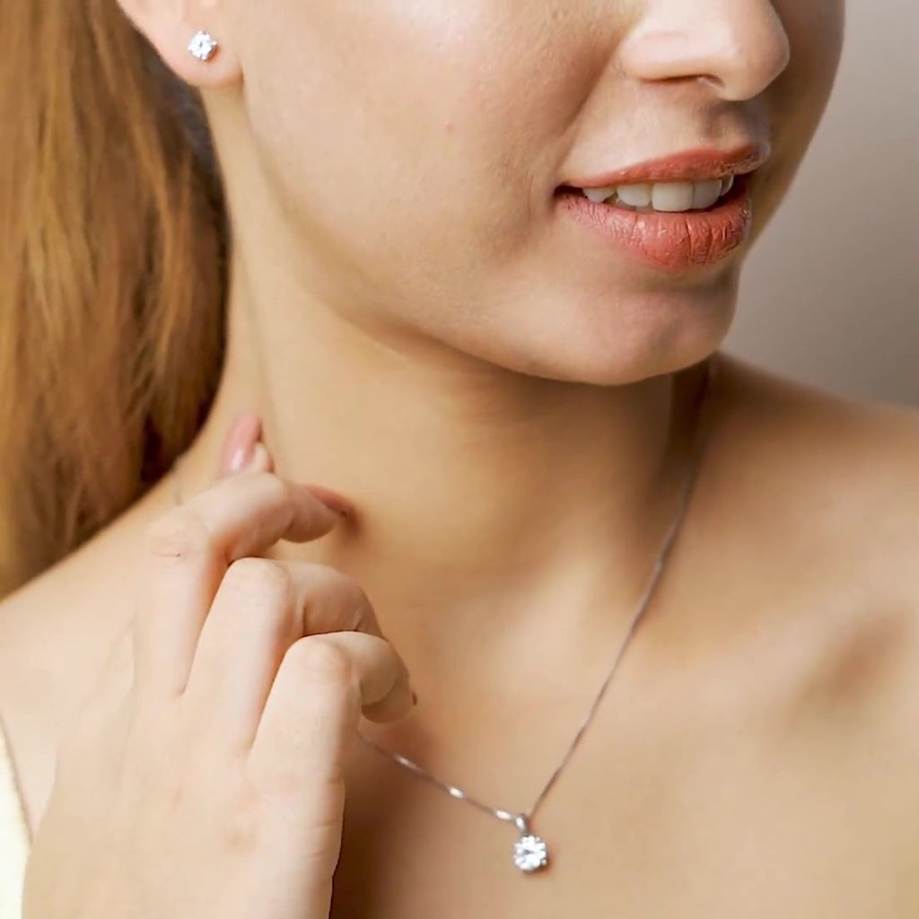 Product Description:- Let the power of your personality shine through the dazzling solitaire. Let the world see your true elegance with this minimalist, yet stunning solitaire jewellery set.