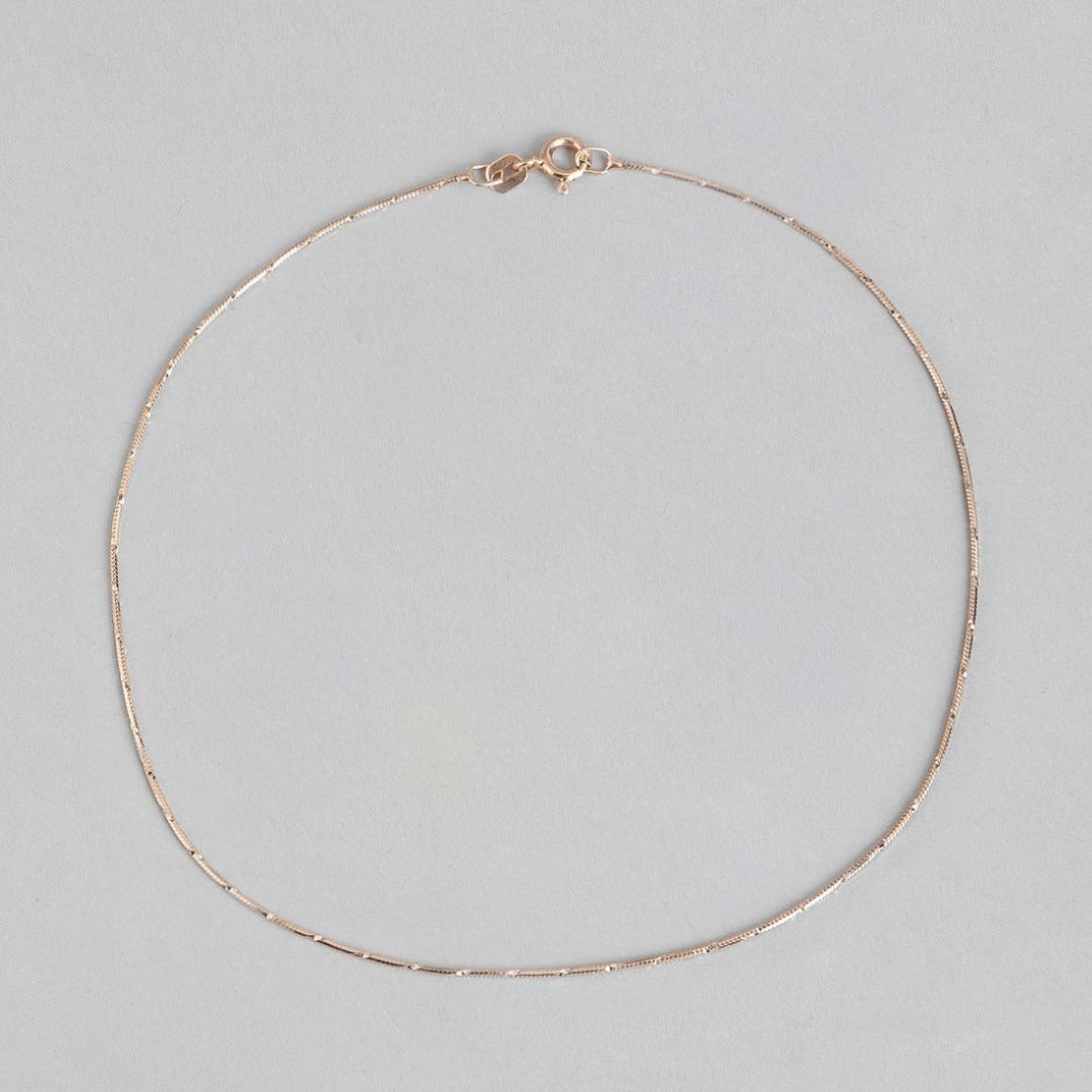 Product Description:- Serene Snake Chain 925 Sterling Silver Rose Gold-Plated Anklet, an embodiment of minimalist elegance. This anklet features a sleek snake chain design crafted from high-quality 925 sterling silver and plated in enchanting rose gold. Its minimalistic pattern exudes sophistication, making it a versatile accessory for any occasion. With a secure and comfortable fit, this anklet adds a touch of refined charm to your ankle while showcasing your unique style.