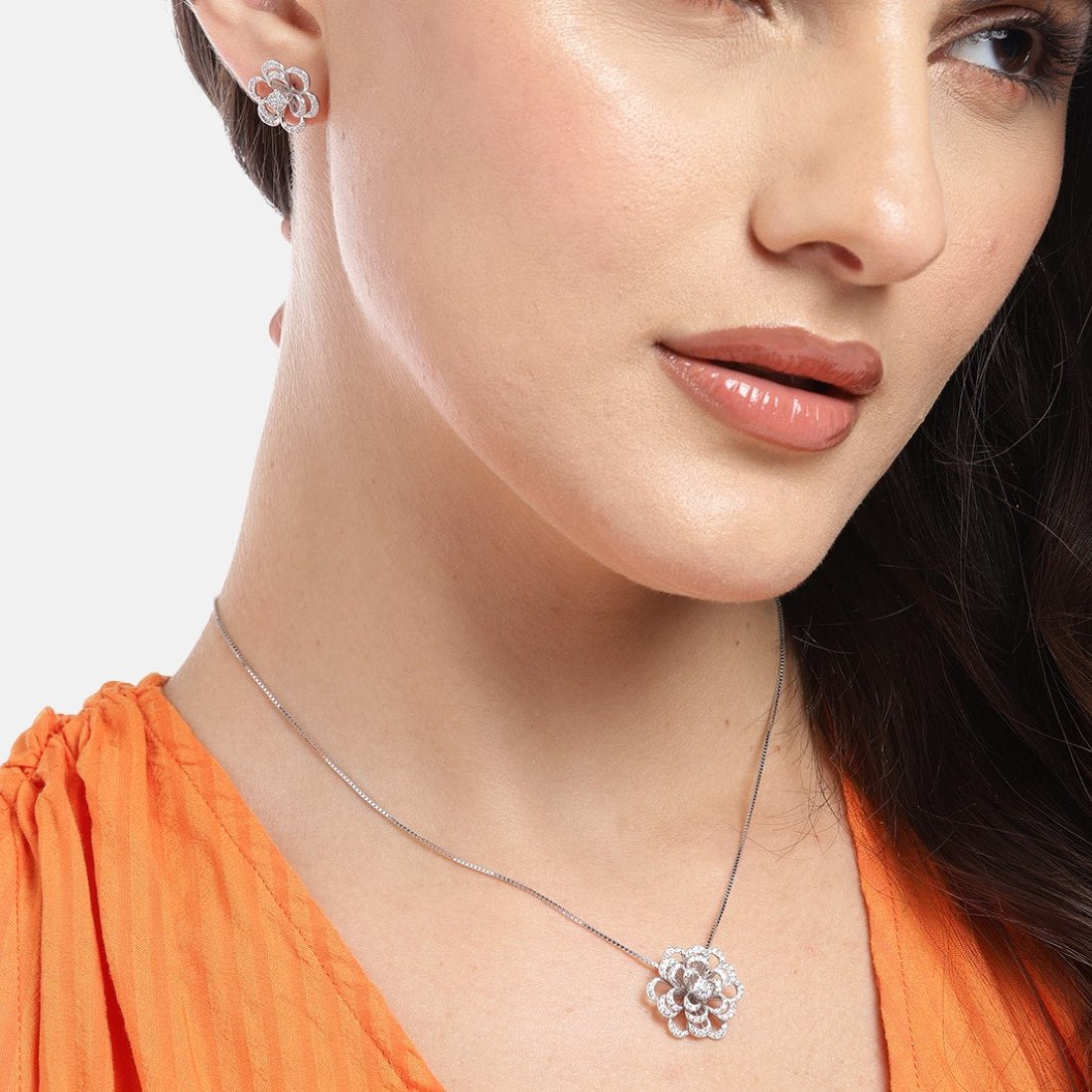 Product Description:- Indulge in the captivating allure of this Rhodium-Plated 925 Sterling Silver Jewelry Set. Each piece is adorned with dazzling Cubic Zirconia stones, creating a symphony of shimmering elegance. The set exudes sophistication and timeless beauty, making it perfect for special occasions or adding a touch of glamour to your everyday style. Elevate your jewelry collection with this exquisite ensemble that reflects both luxury and grace.