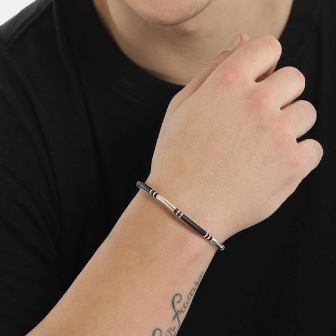 Sleek Radiance Rhodium-Plated 925 Sterling Silver Bracelet for Him