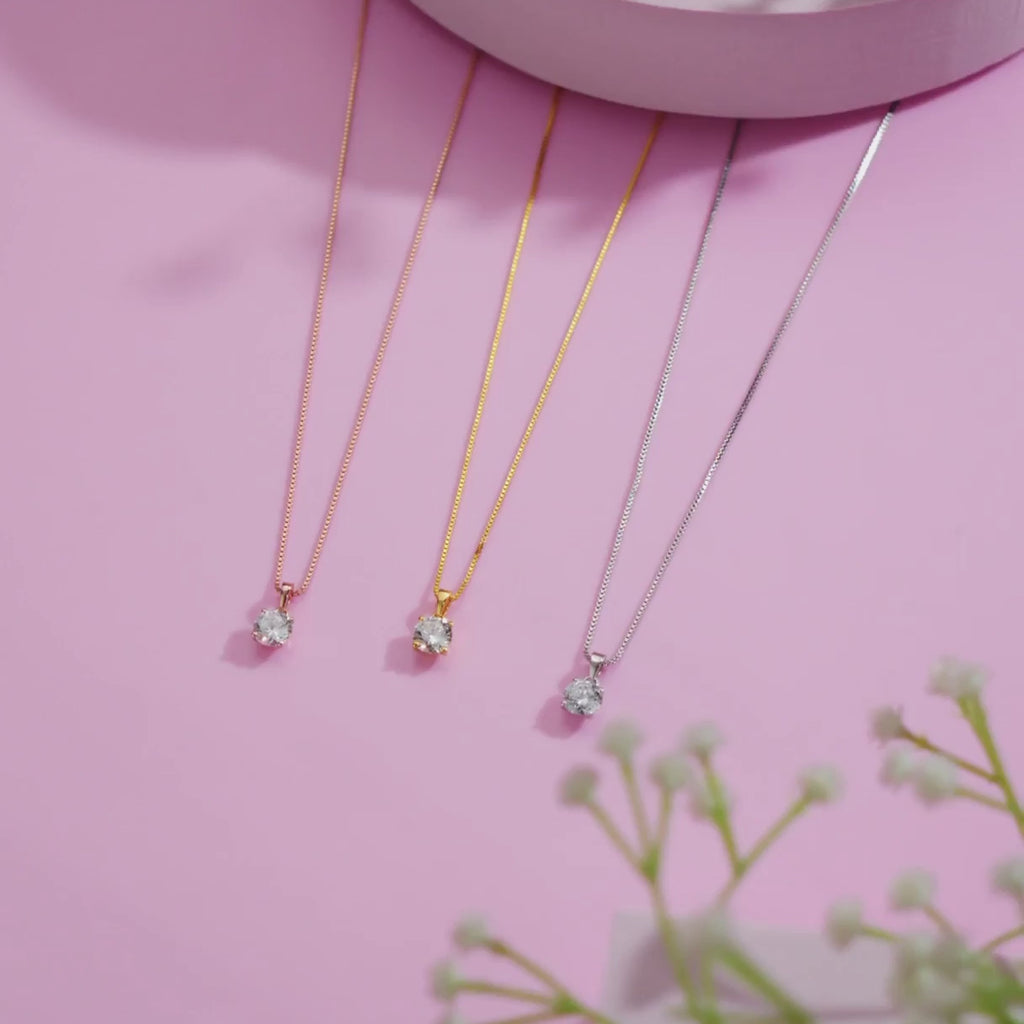 Solitaire Gold Plated 925 Sterling Silver Pendant with Box Chain