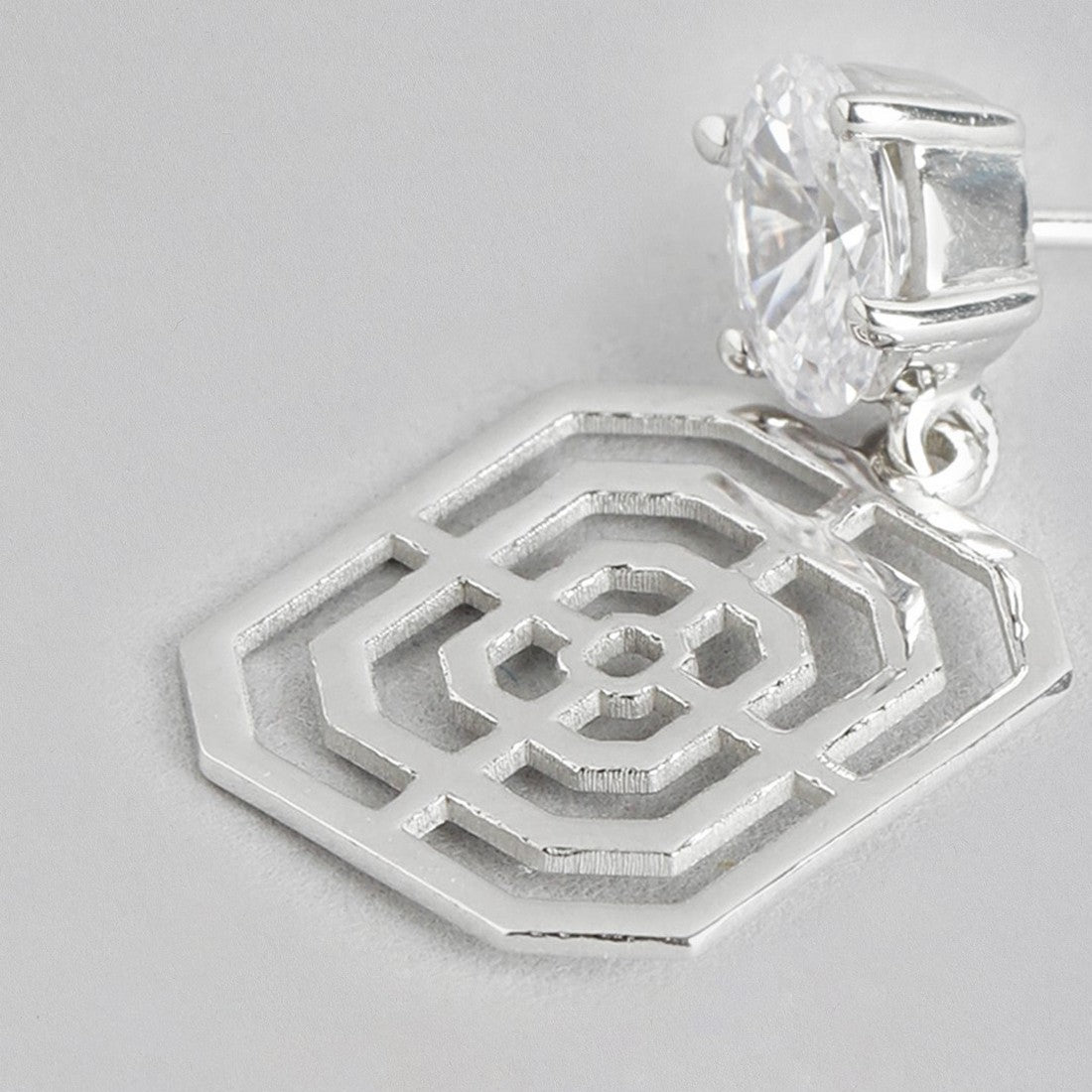 Solitaire Geometric Rhodium Plated 925 Sterling Silver Drop Earrings