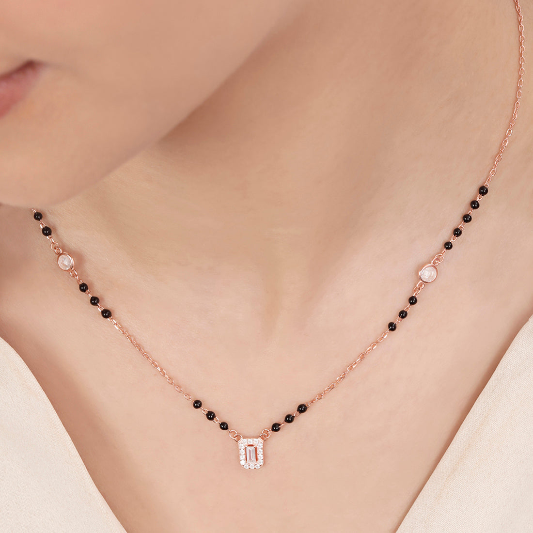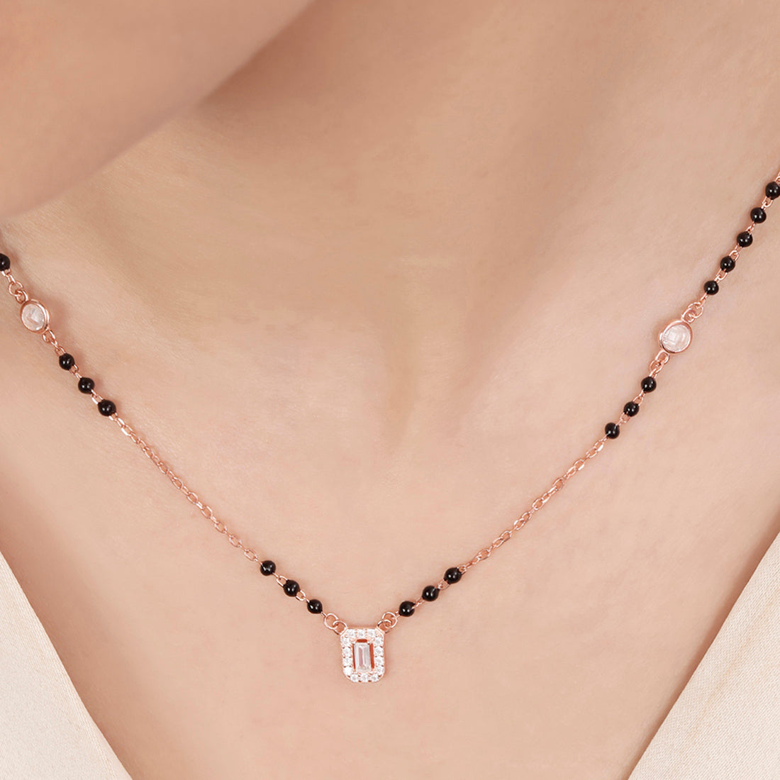 Solitaire Halo Rose Gold Plated 925 Sterling Silver Mangalsutra