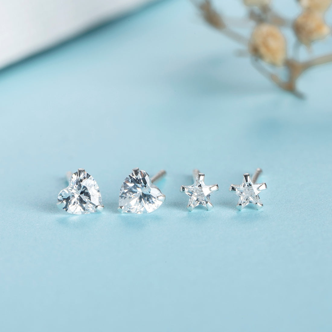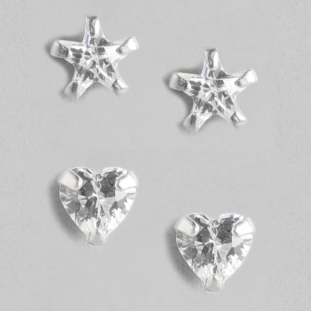 Product Description:- Dazzle with our Starry Heartbeat Combo Earrings, crafted from Rhodium-Plated 925 Sterling Silver and adorned with sparkling Cubic Zirconia. The stars and hearts dance in perfect harmony, reflecting elegance and love. These earrings effortlessly elevate any look, adding a touch of celestial charm. Illuminate your style with the brilliance of these finely crafted pieces that capture both the twinkle of stars and the warmth of a heart's embrace.