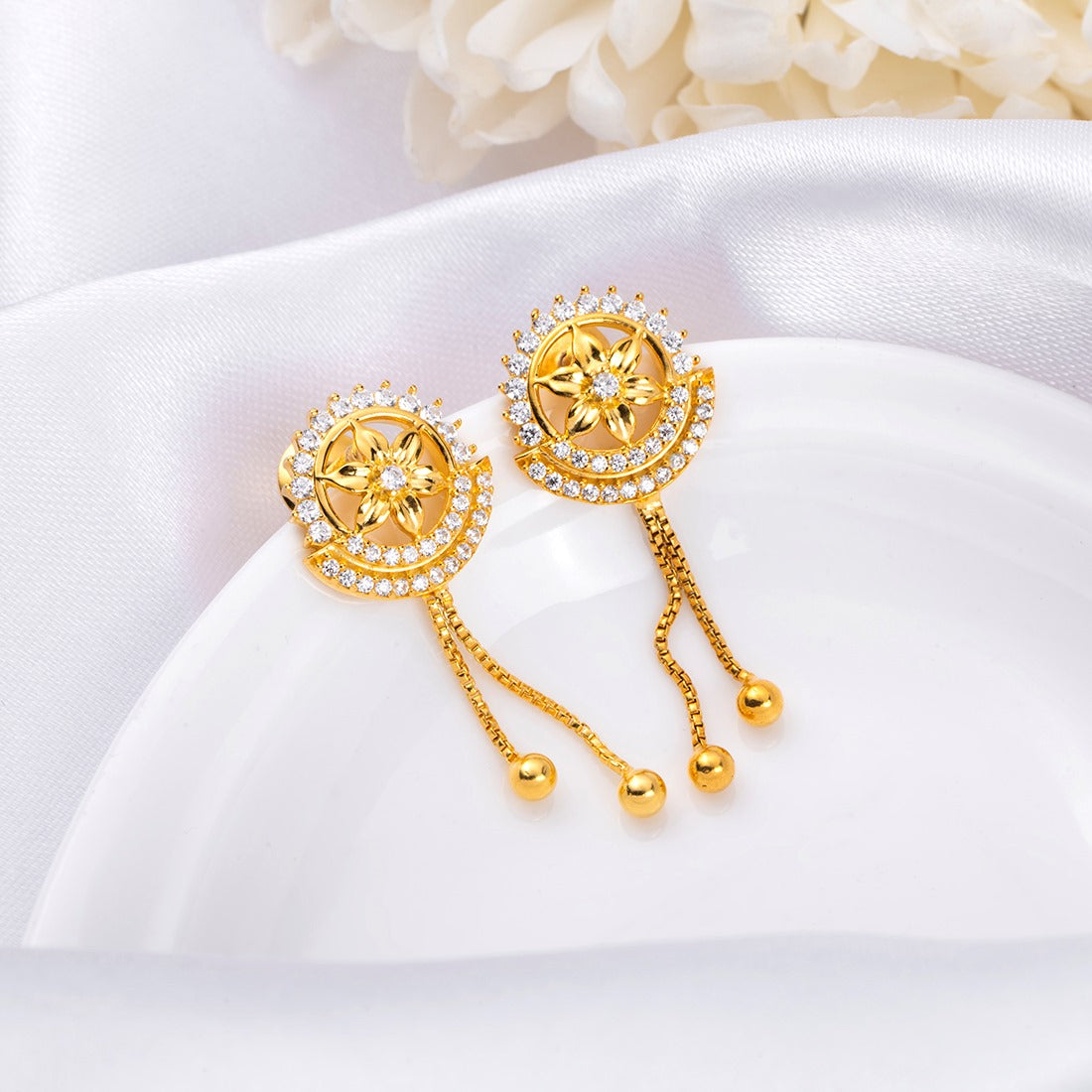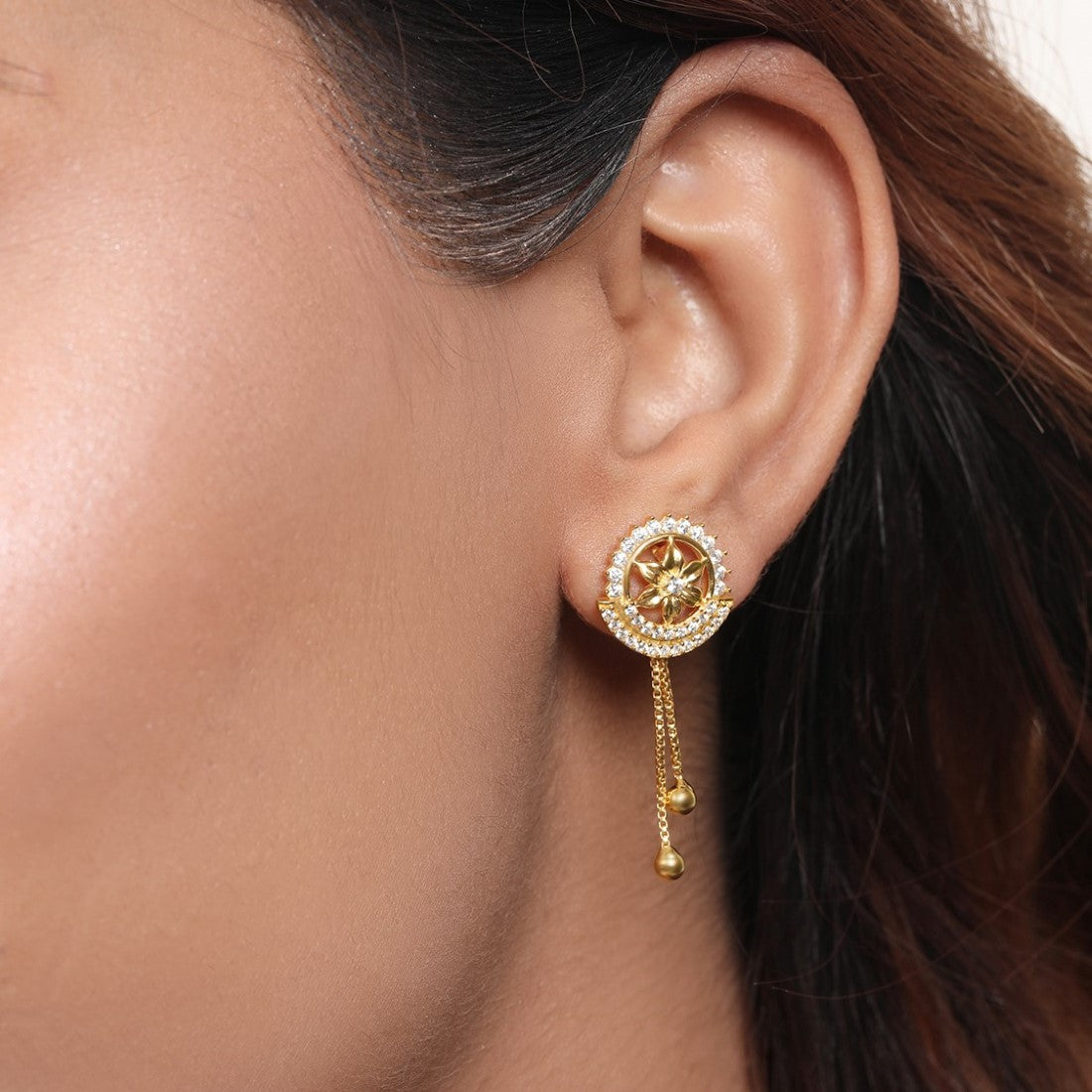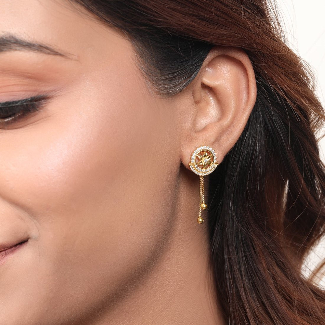 Product Description:- Adorn yourself with the celestial allure of our Starry Night Earrings. Crafted from high-quality 925 sterling silver and plated in radiant gold, these earrings feature captivating circles embellished with shimmering cubic zirconia stars. The intricate design captures the essence of a starlit sky, adding a touch of cosmic elegance to any ensemble. Perfect for both casual wear and special occasions, these earrings are a symbol of celestial beauty and timeless sophistication. Illuminate your style and embrace the enchantment of the night with our Starry Night Earrings.