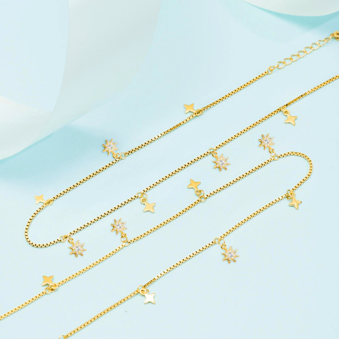 Starry Night 925 Sterling Silver Gold-Plated Star Pattern Anklets