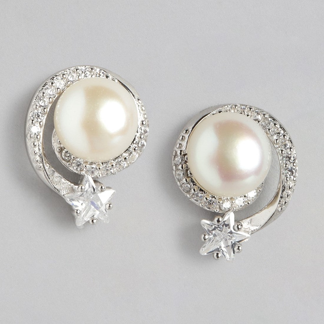 Product Description:- Elevate your elegance with our Stellar Pearl Radiance Earrings. Meticulously crafted from high-quality 925 Sterling Silver and plated with enduring rhodium, these star-patterned earrings feature the enchanting combination of Cubic Zirconia brilliance and the timeless beauty of freshwater pearls. The result is a captivating accessory that effortlessly merges sophistication with natural allure, making it a perfect choice for any occasion.