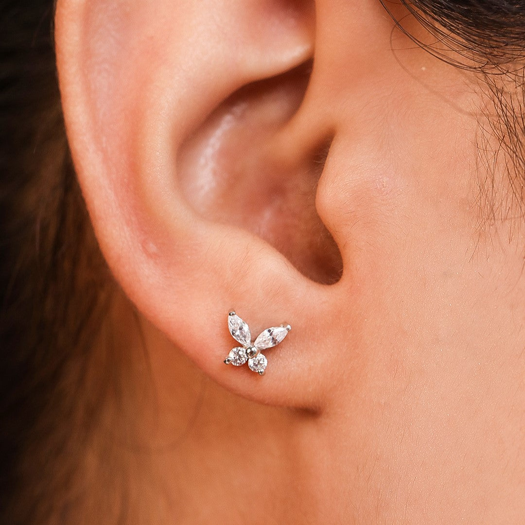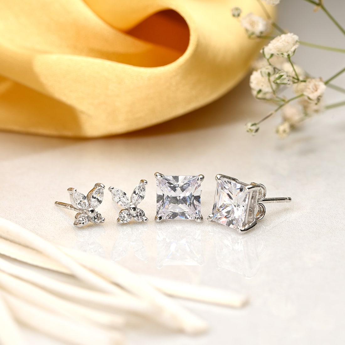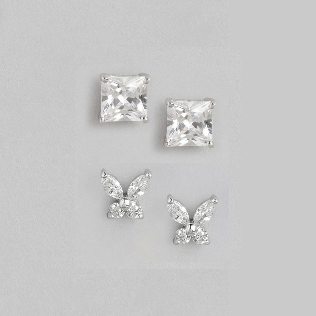 Product Description:- Indulge in elegance with this stunning combo of 925 sterling silver earrings, featuring exquisite rhodium plating and a charming mix of butterfly and square designs. The intricate craftsmanship and attention to detail make these earrings a standout accessory that complements any outfit. The butterfly design adds a touch of whimsy and femininity, while the square design brings a modern and sophisticated flair. Perfect for day or evening wear, these earrings are a versatile addition to your jewelry collection, adding a touch of grace and style to your look.