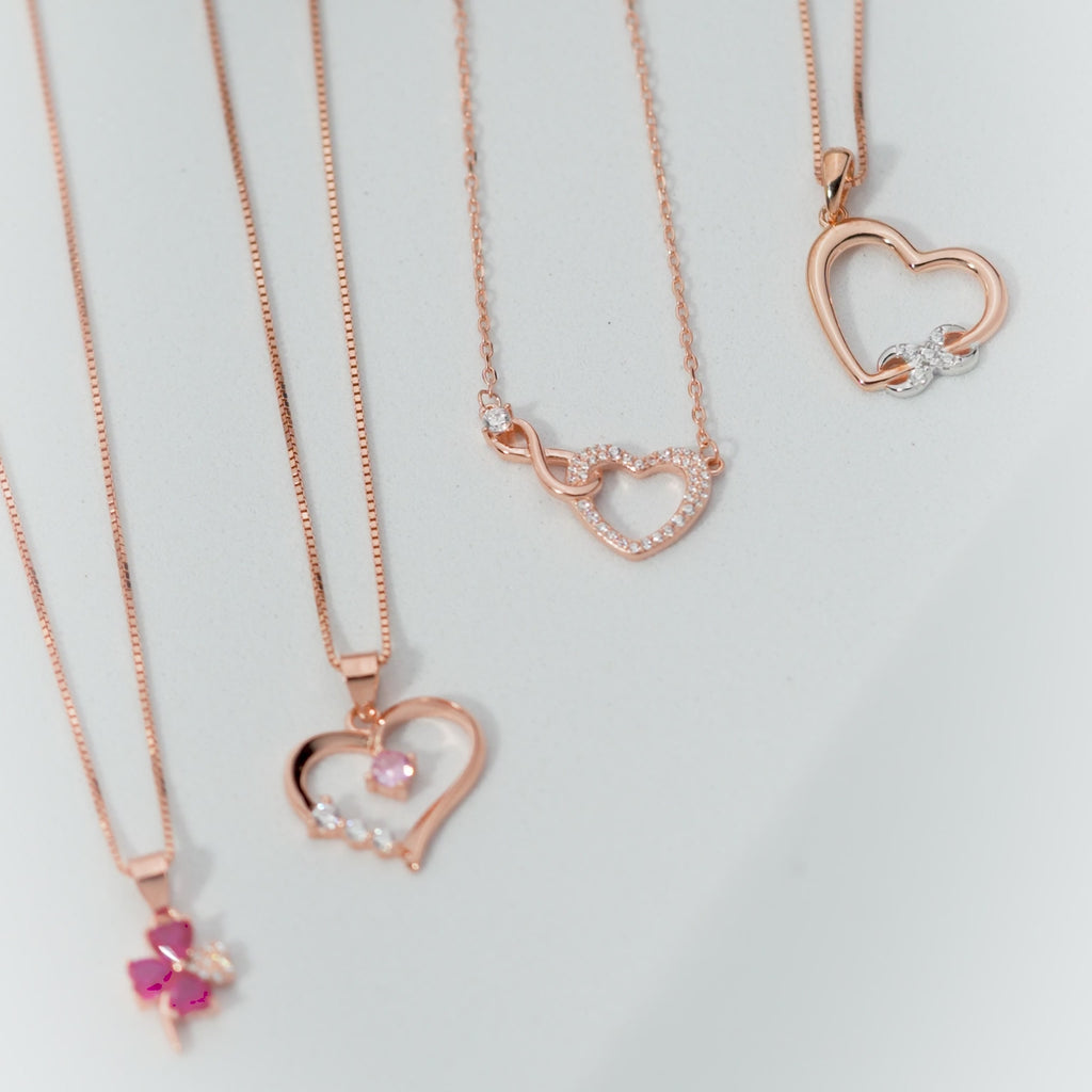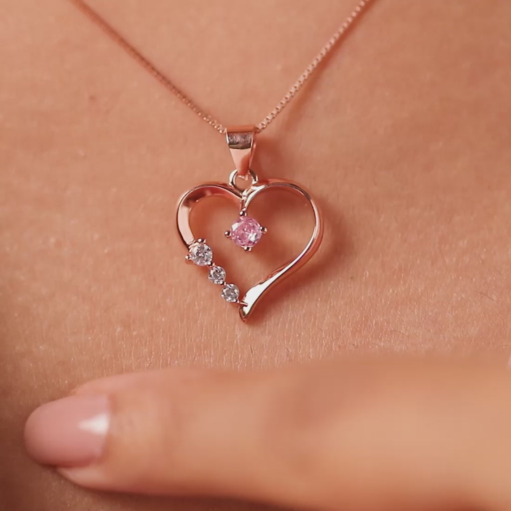 Rose-gold plated 925 silver pendant featuring a large baby pink CZ heart surrounded by smaller CZ accents.