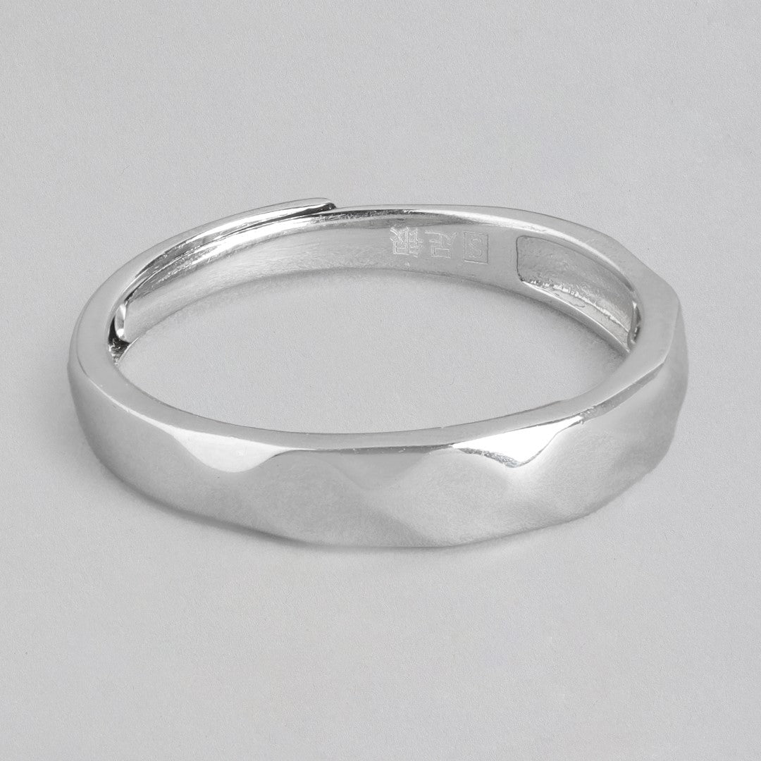 Timeless Simplicity Rhodium-Plated 925 Sterling Silver Men's Band Ring (Adjustable)
