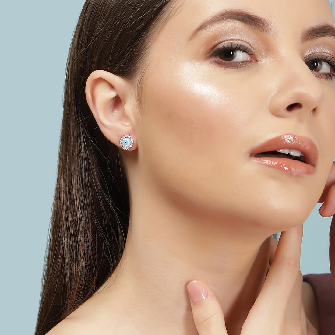 Product Description:- Slay on every occasion, keeping away the evil eye with these beautiful Studs from Zavya. Crafted expertly, the glimmer of silver perfect to adorn the fashionista in you.