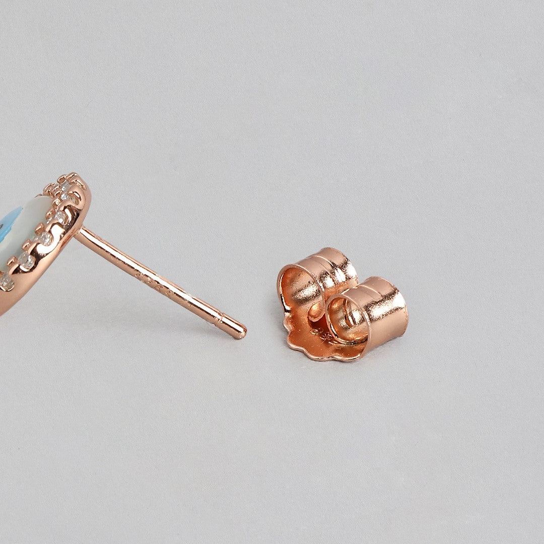 Turkish Evil Eye Rose Gold Stone 925 Silver Earrings