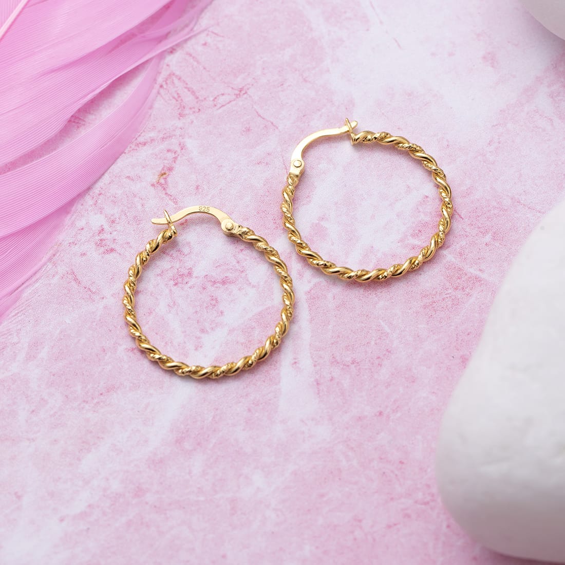 Twisted Gold Plated 925 Sterling Silver Hoops