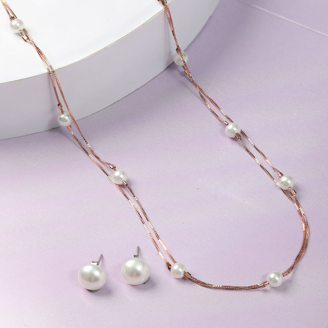 • Set of rose gold Necklace and a pair of rhodium plated Earrings