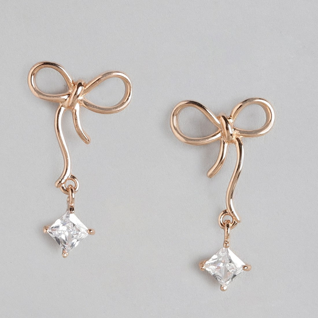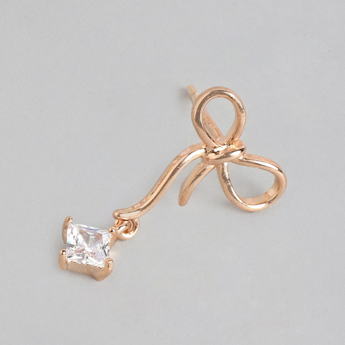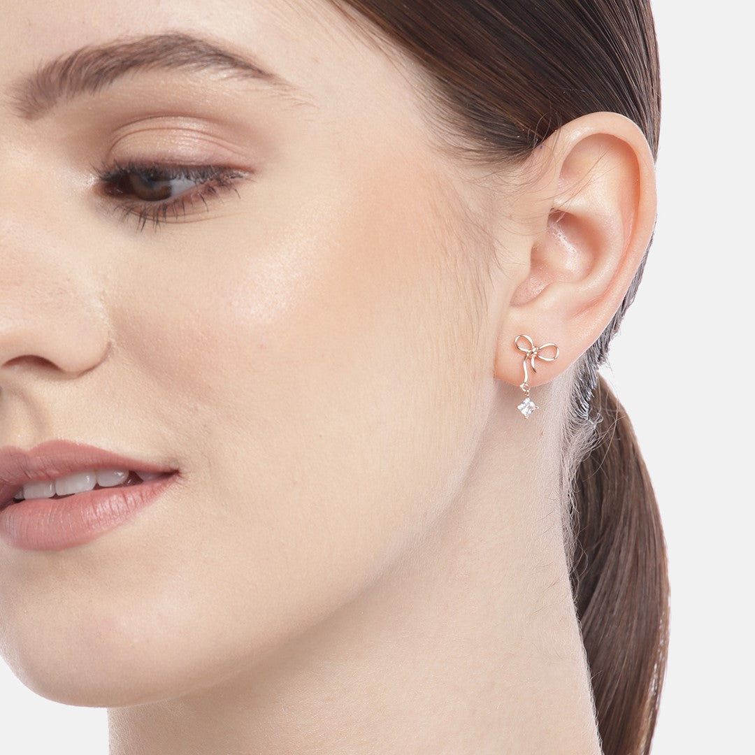 Bow drop with CZ Rose Gold Plated Earring