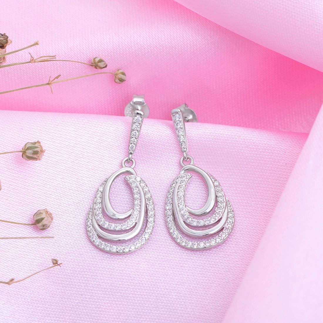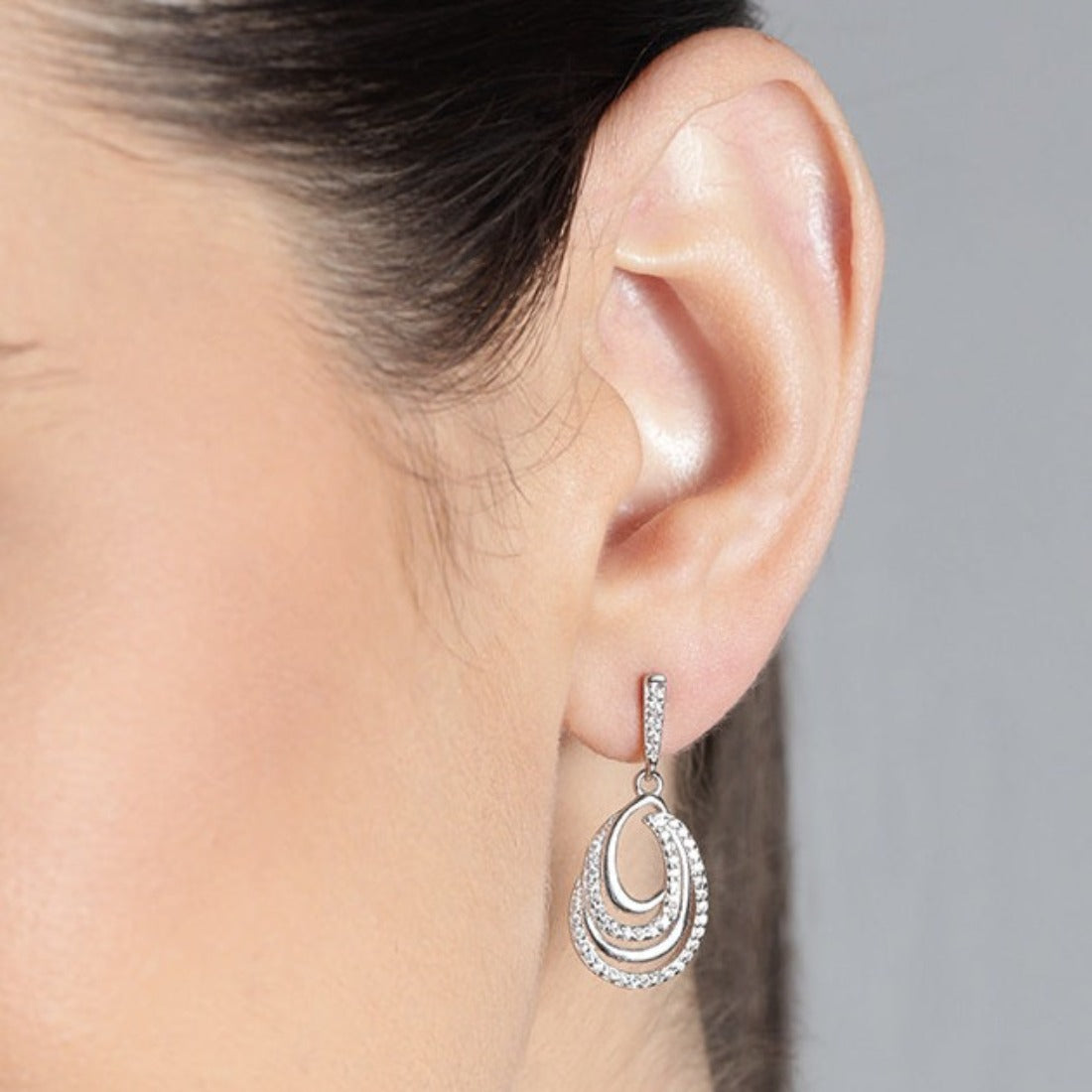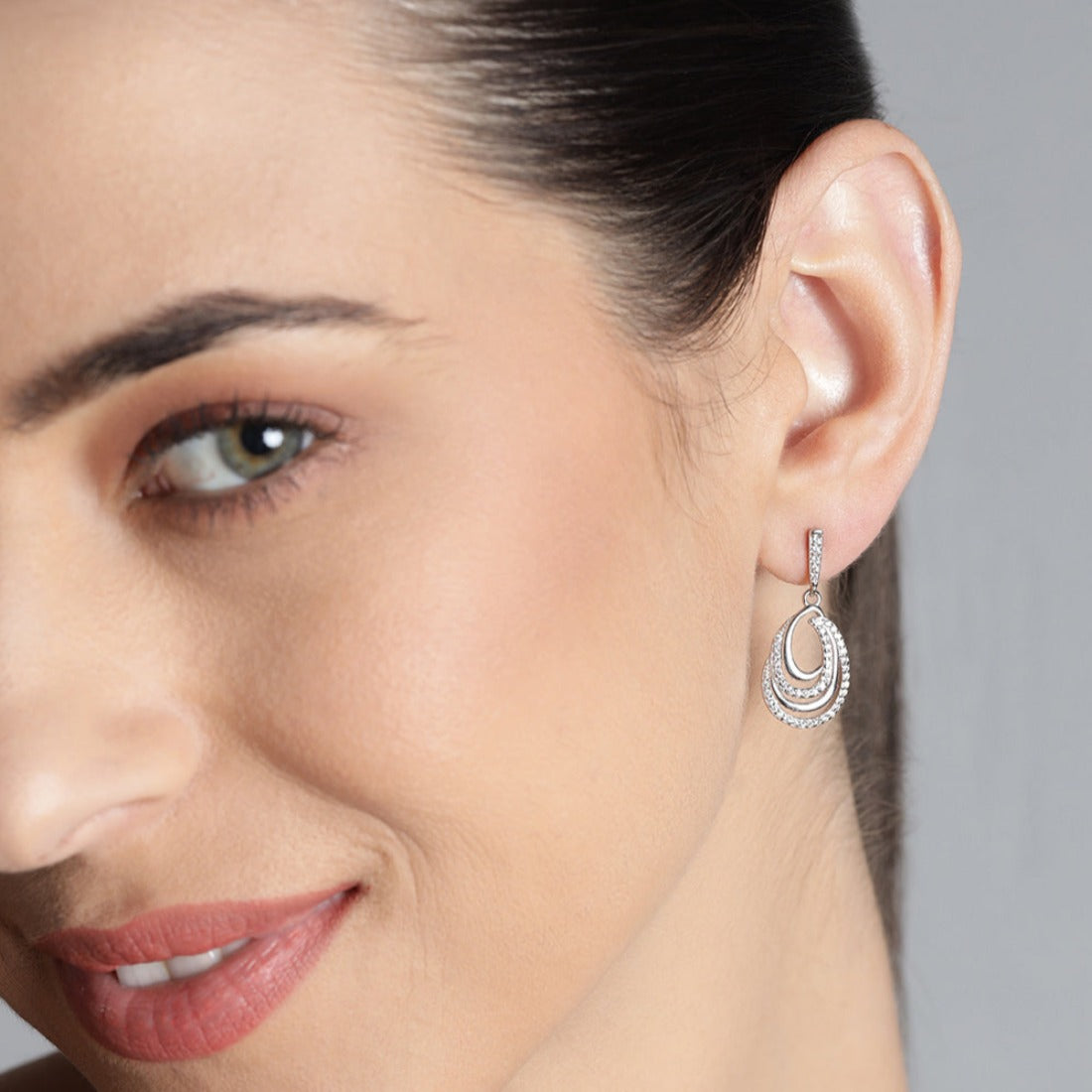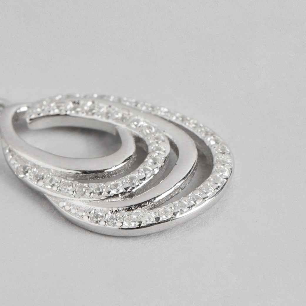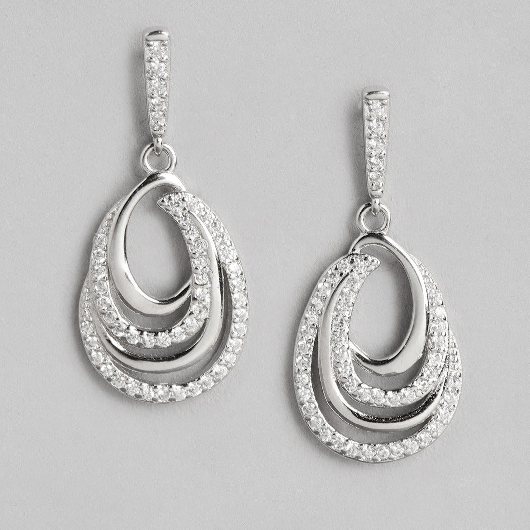 Contemporary CZ Rhodium Plated 925 Sterling Silver Earring