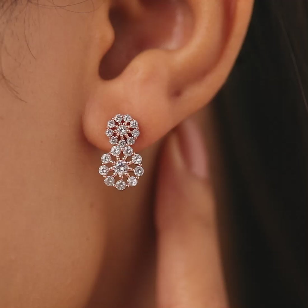 CZ Studded Rose Gold Plated 925 Sterling Silver Cluster Earrings