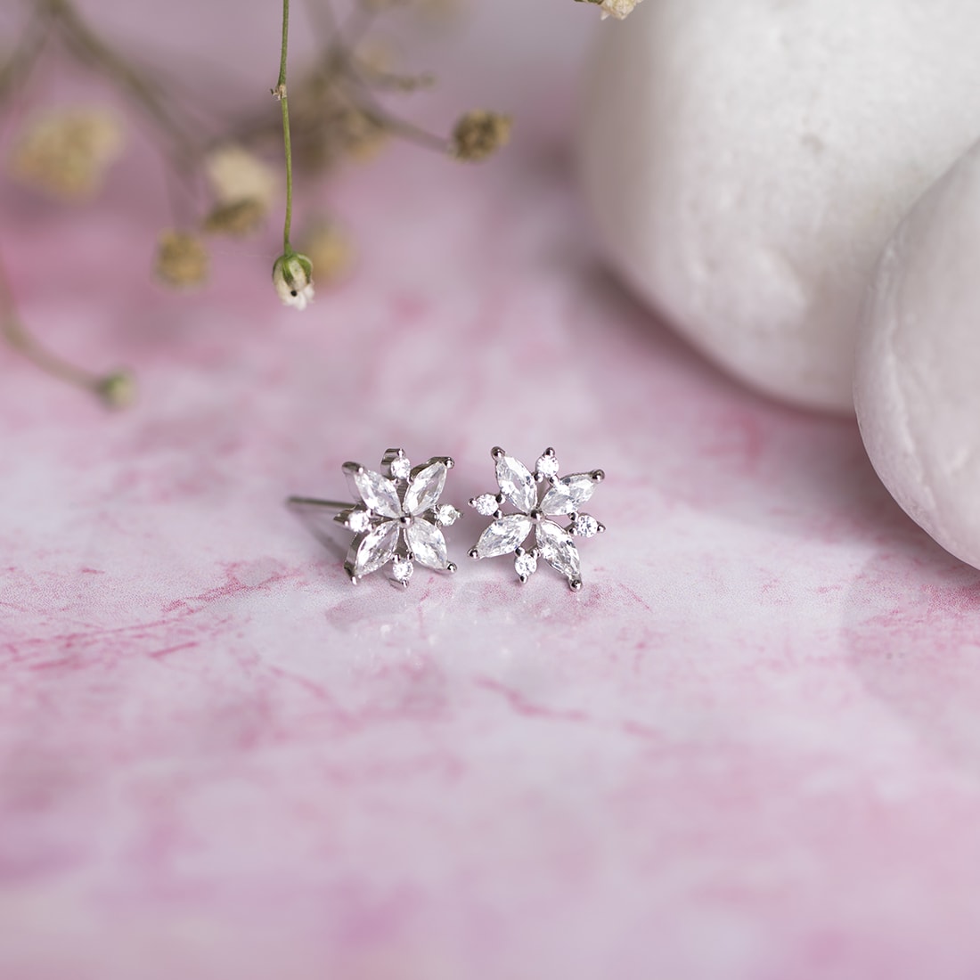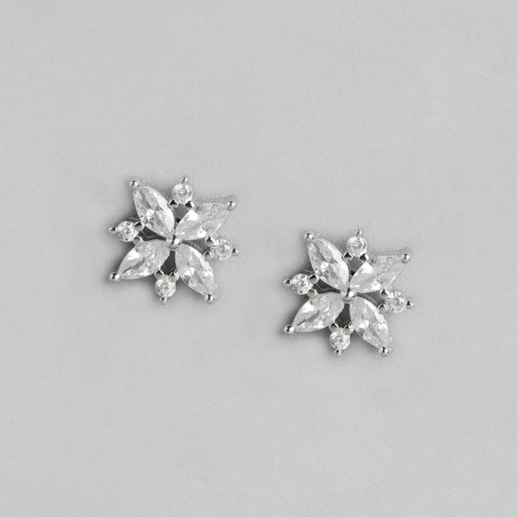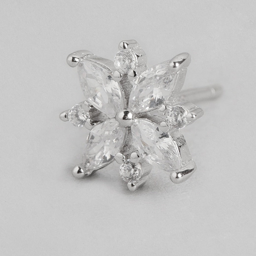 Sparkling Flower Rhodium Plated 925 Sterling Silver Stud