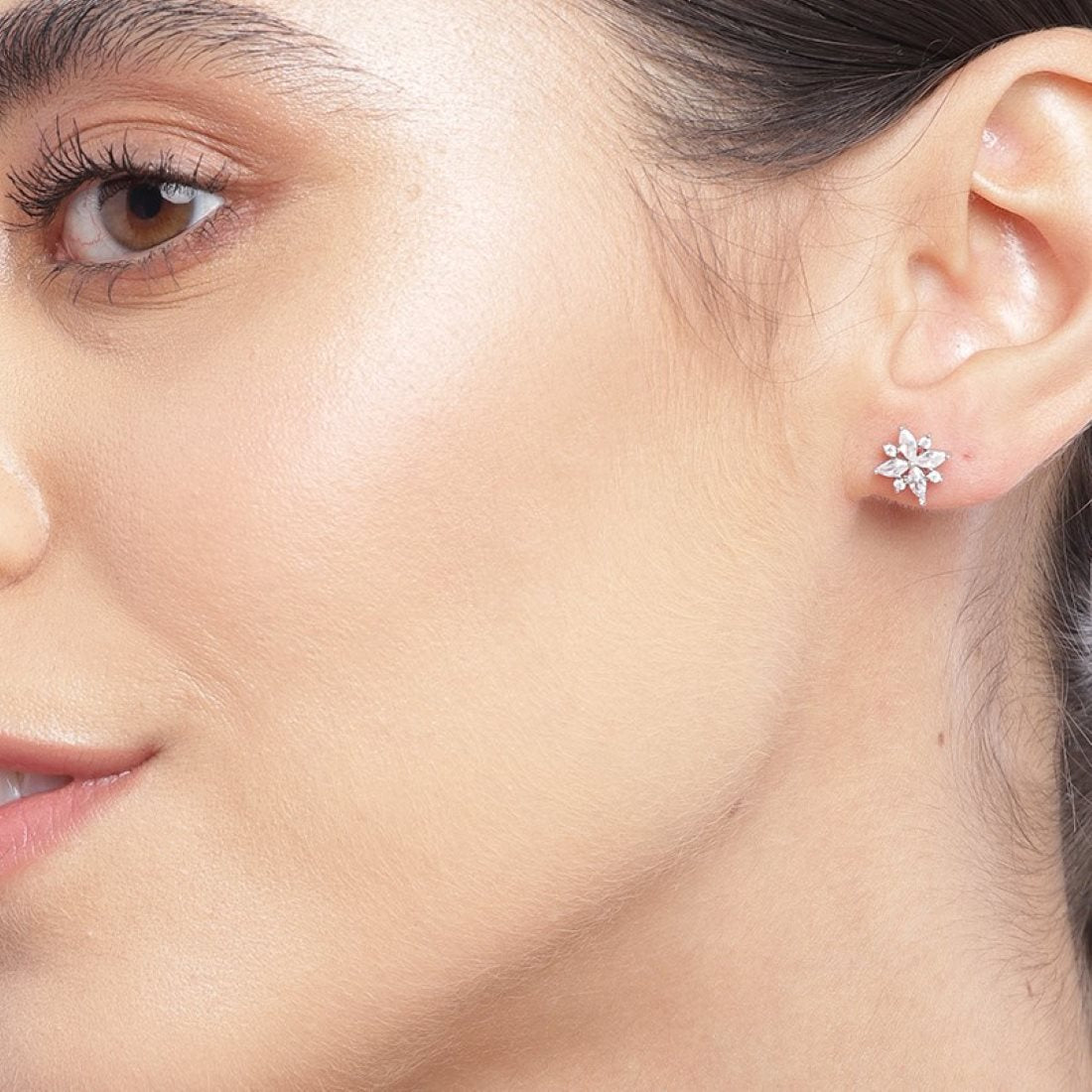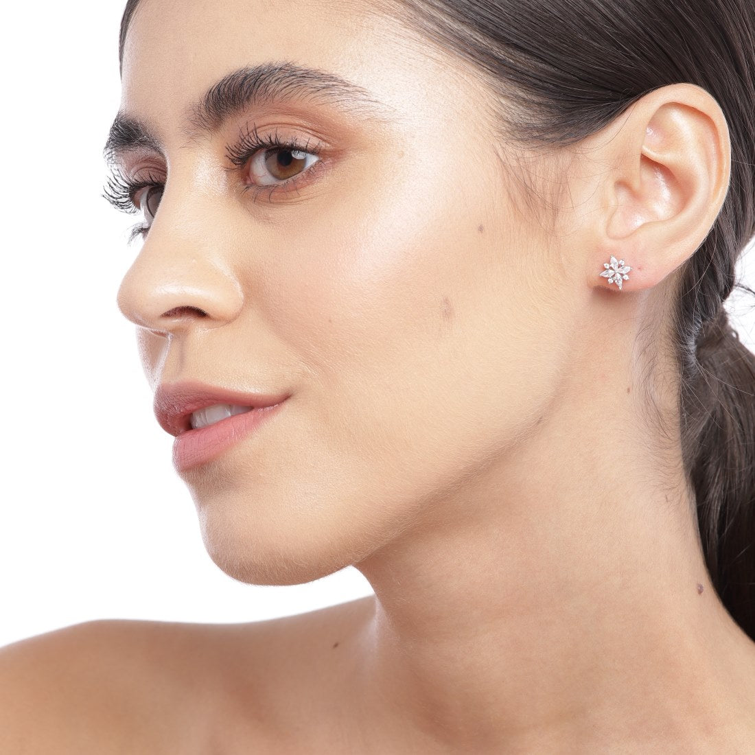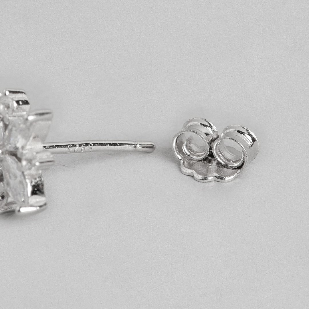 Sparkling Flower Rhodium Plated 925 Sterling Silver Stud