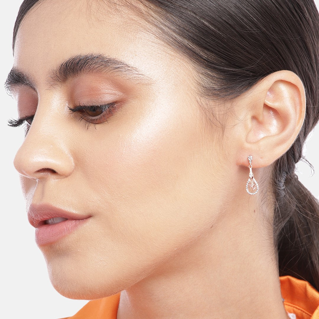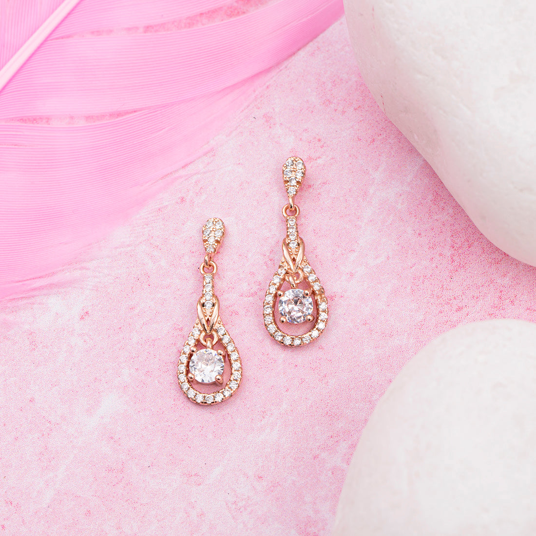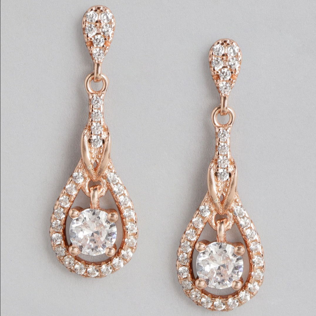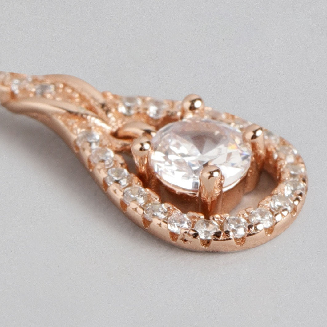 Halo Drop-CZ Rose Gold Plated 925 Sterling Silver Earring