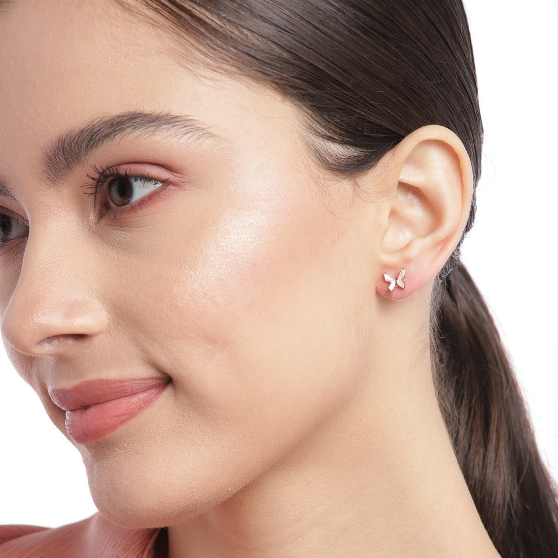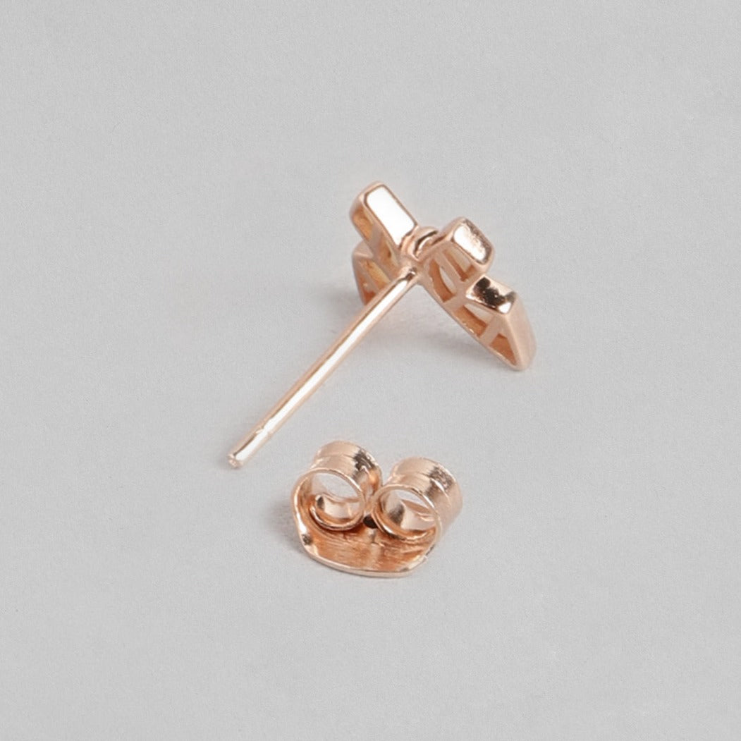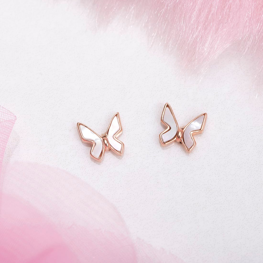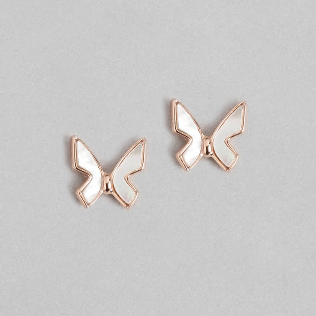 White Butterfly Rose Gold Plated 925 Sterling Silver Stud Earrings