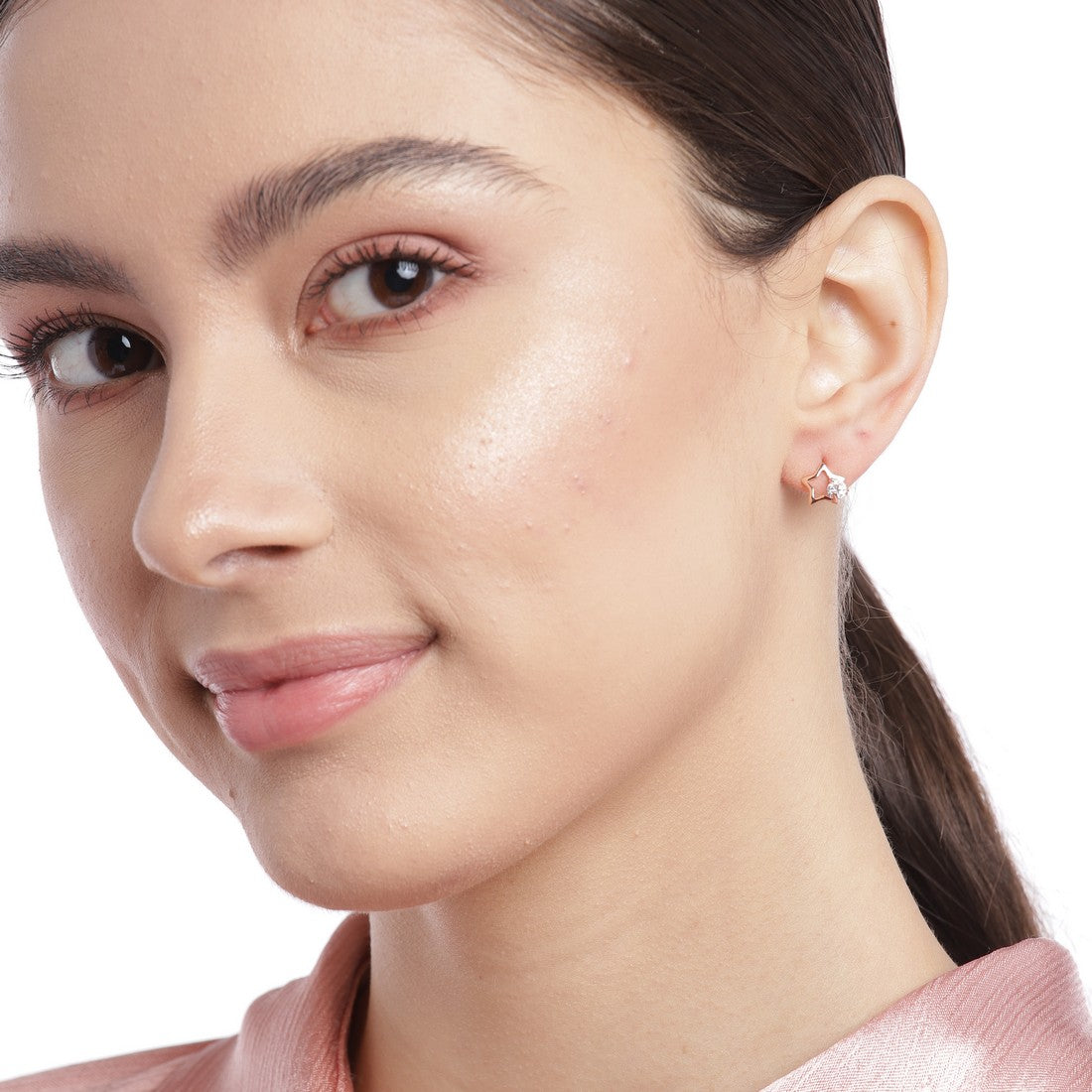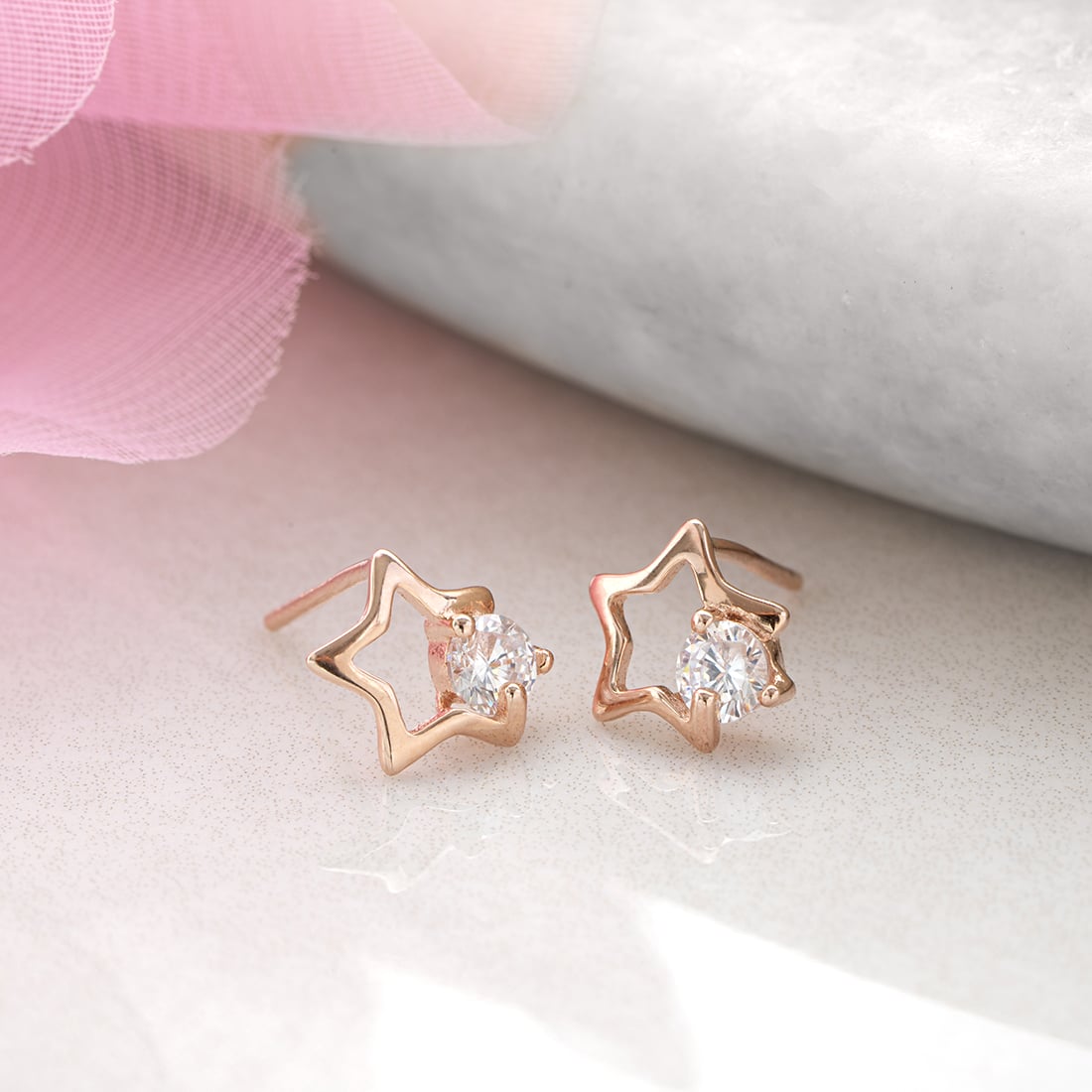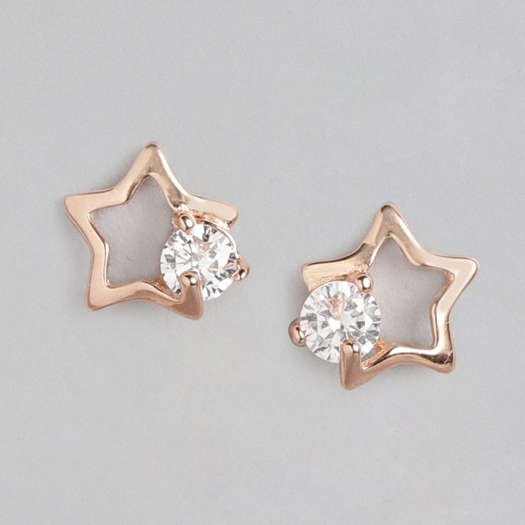 Star CZ Rose-Gold Plated 925 Sterling Silver Earrings
