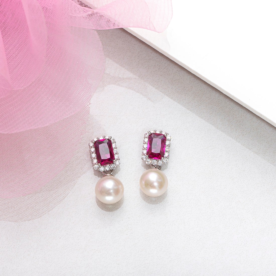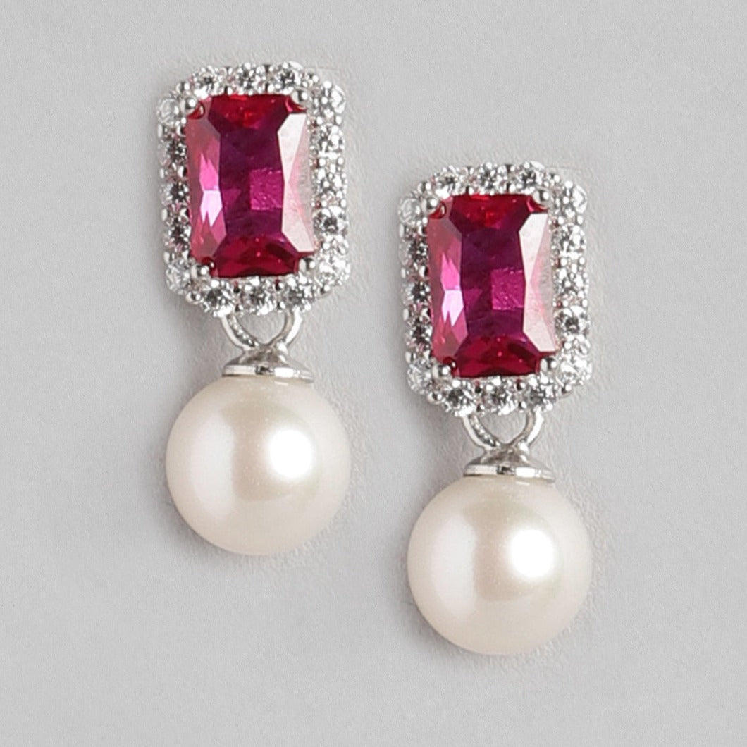 Ruby Pearl 925 Sterling Silver Drop Earrings
