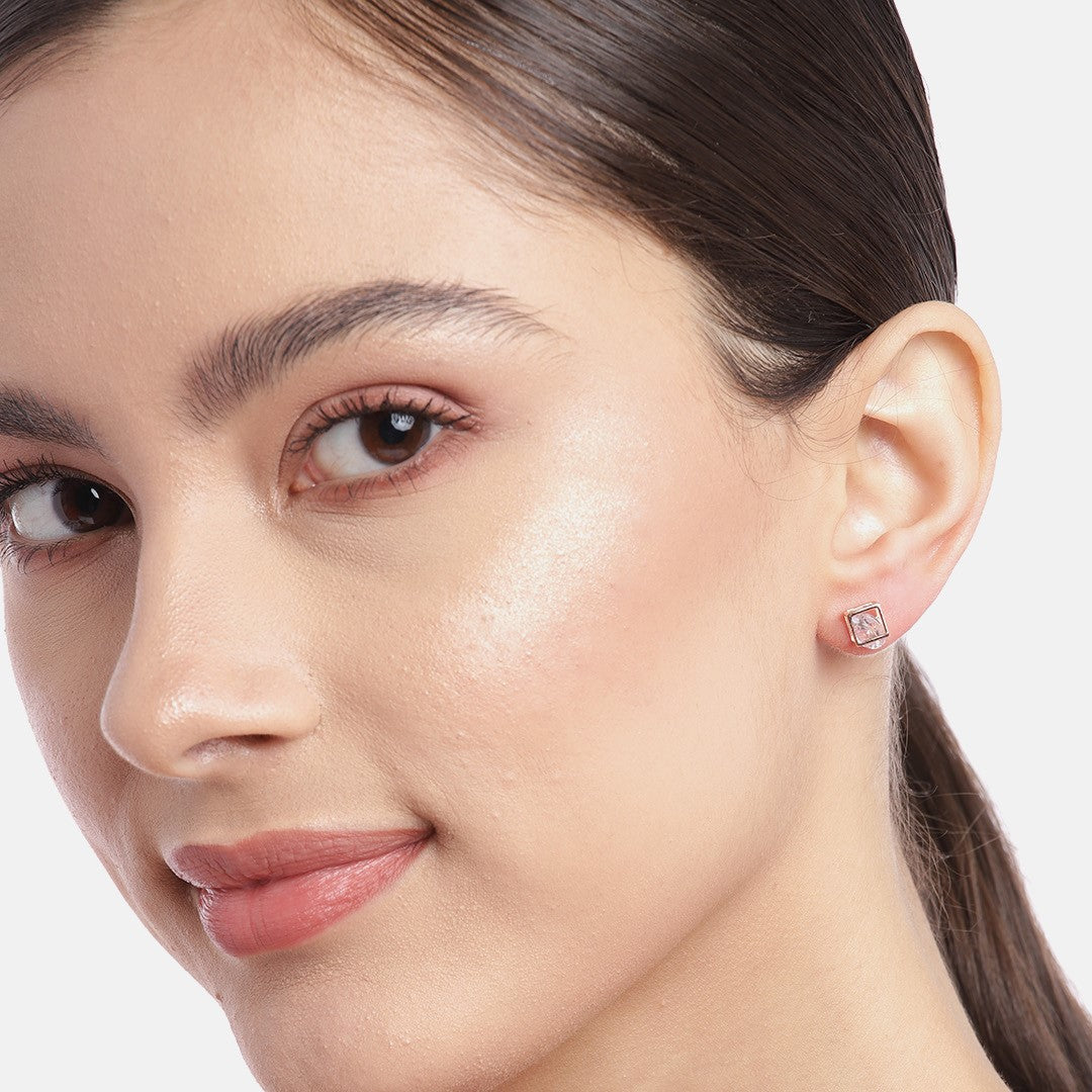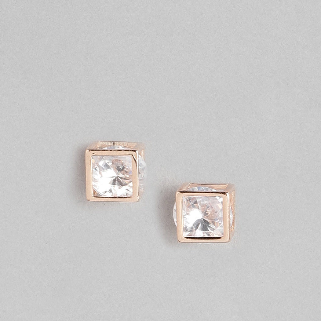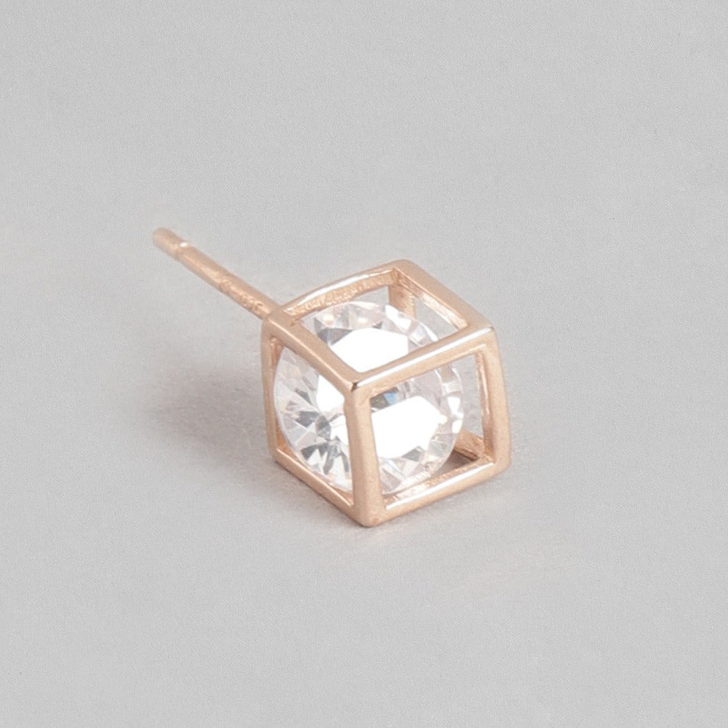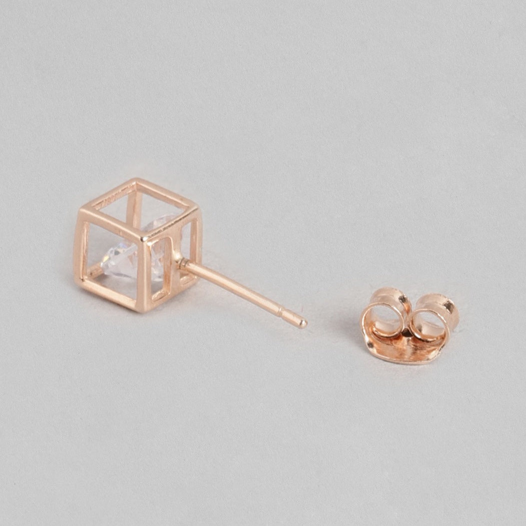 Cube Rose Gold Plated 925 Sterling Silver Stud Earrings