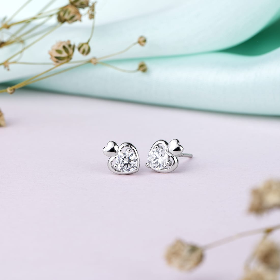 Stunning Heart CZ 925 Sterling Silver Earrings