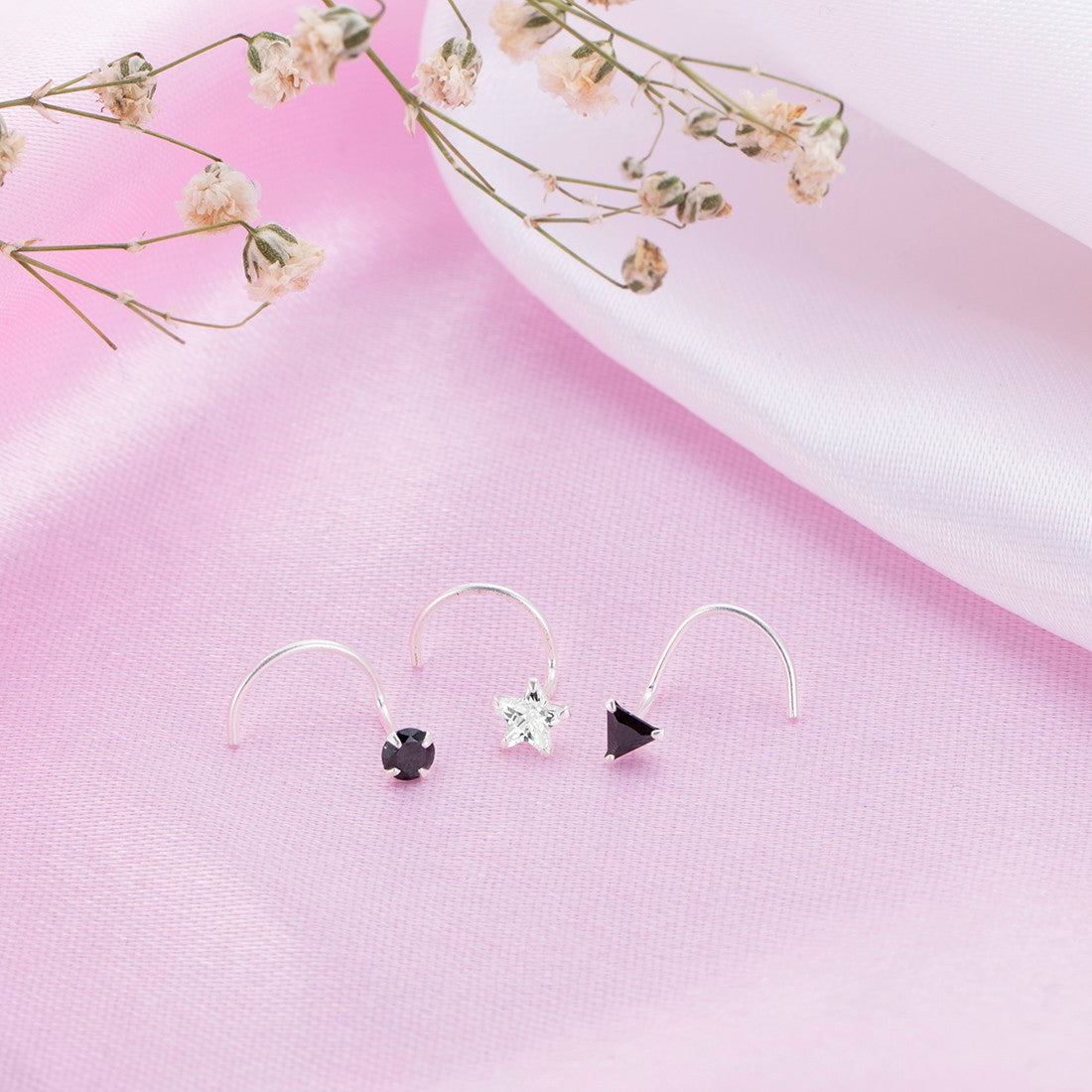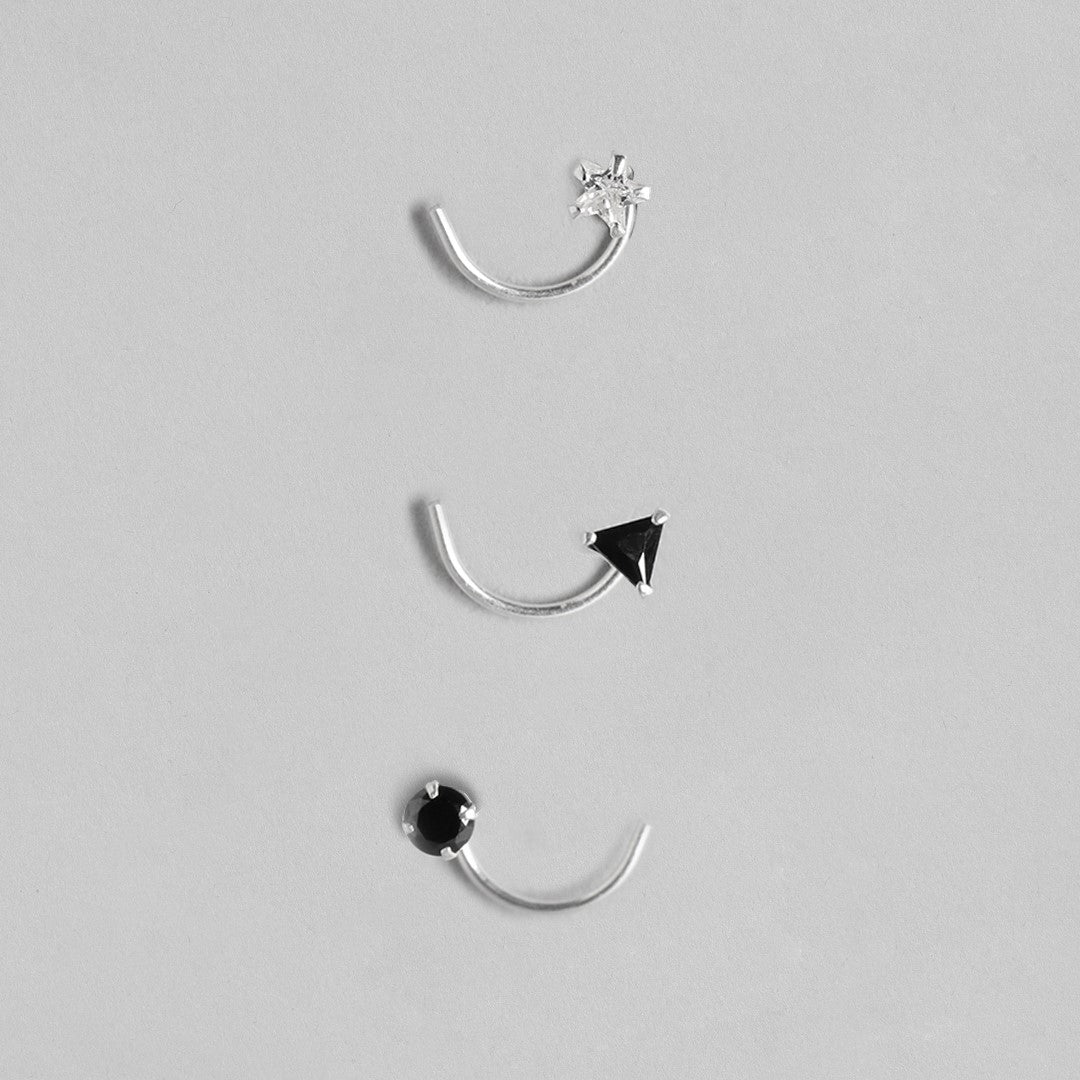 Geometrical 925 Sterling Silver Nath Set of 3