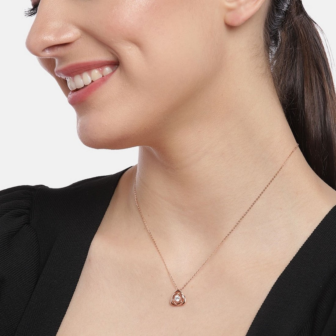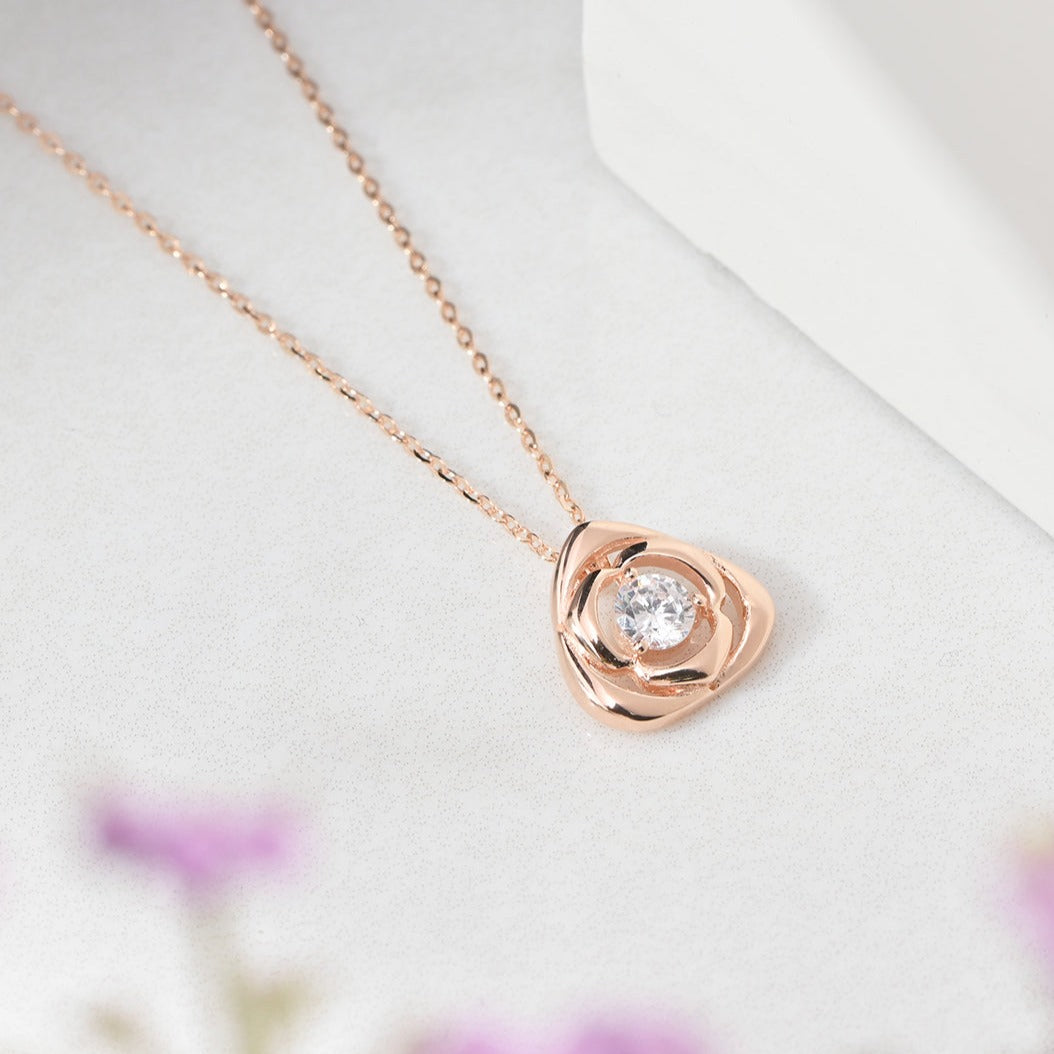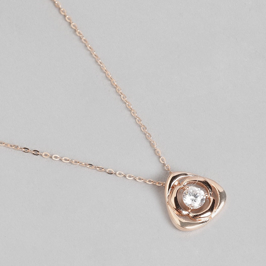 Triangle Solitaire Rose Gold Plated 925 Sterling Silver Necklace