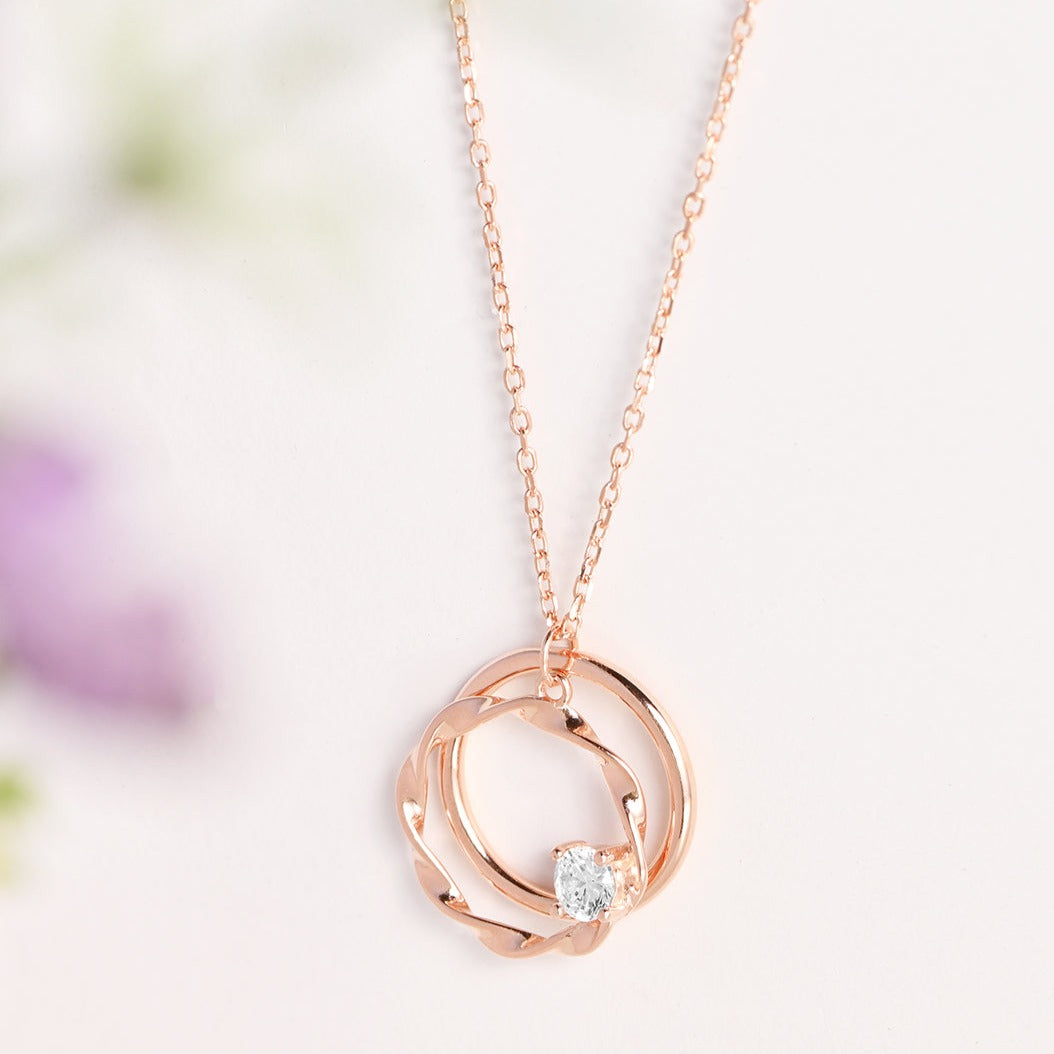Infinity Circles Rose Gold Plated 925 Sterling Silver CZ Necklace
