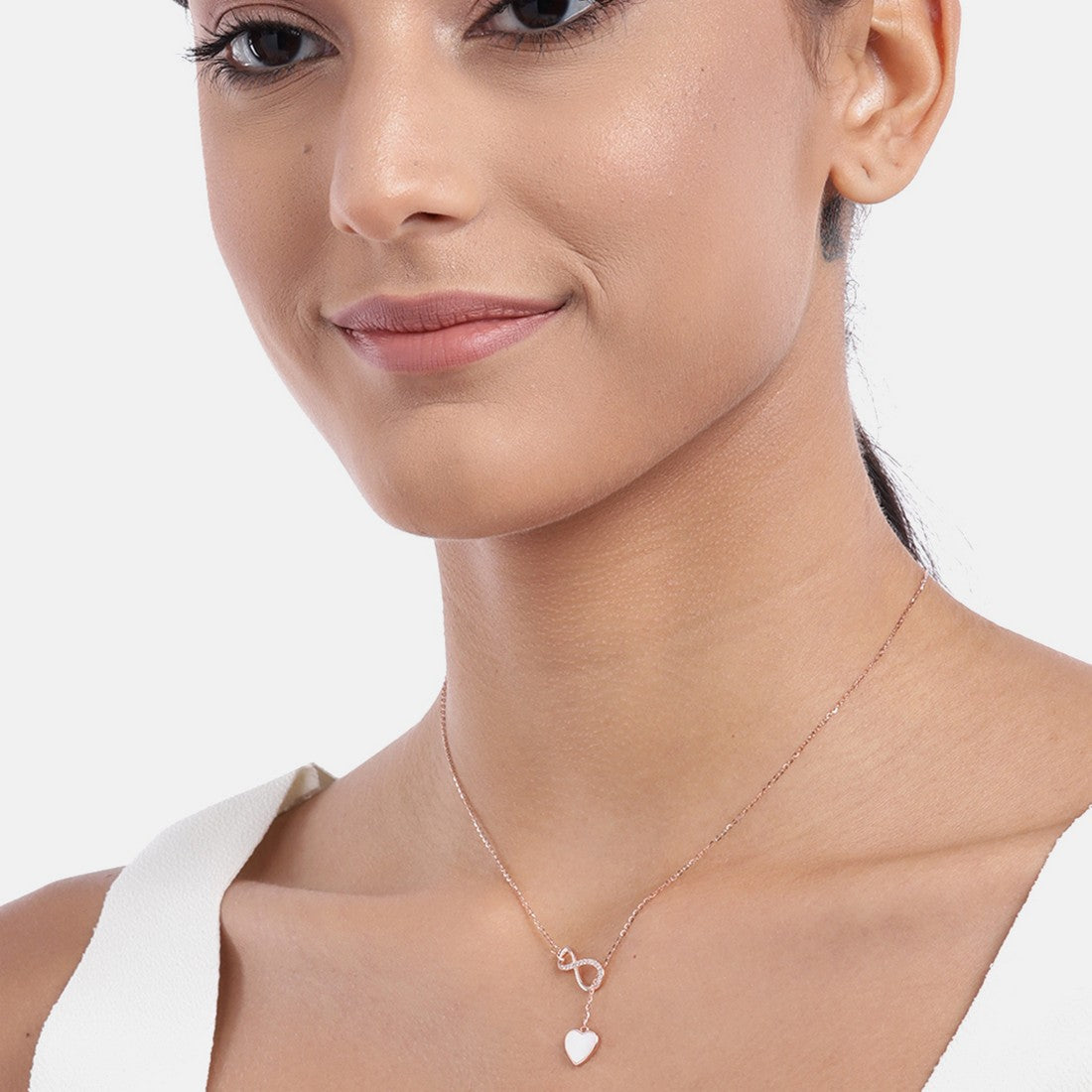 Infinity Heart Rose Gold Plated 925 Sterling Silver Drop Necklace