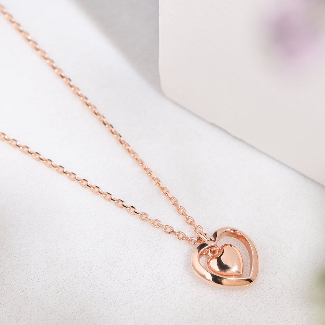 Heart & Love Rose Gold Plated 925 Sterling Silver Necklace