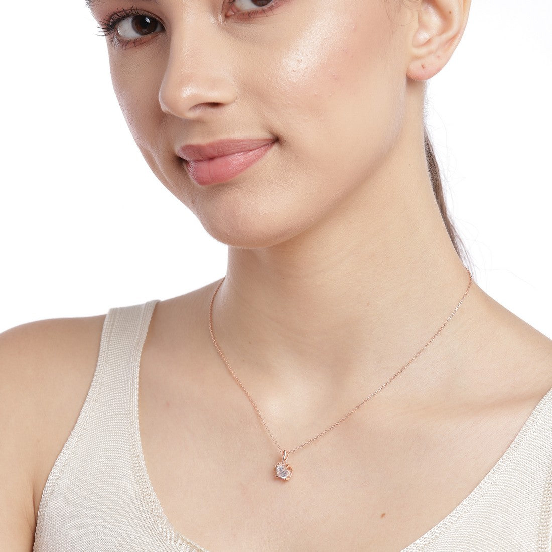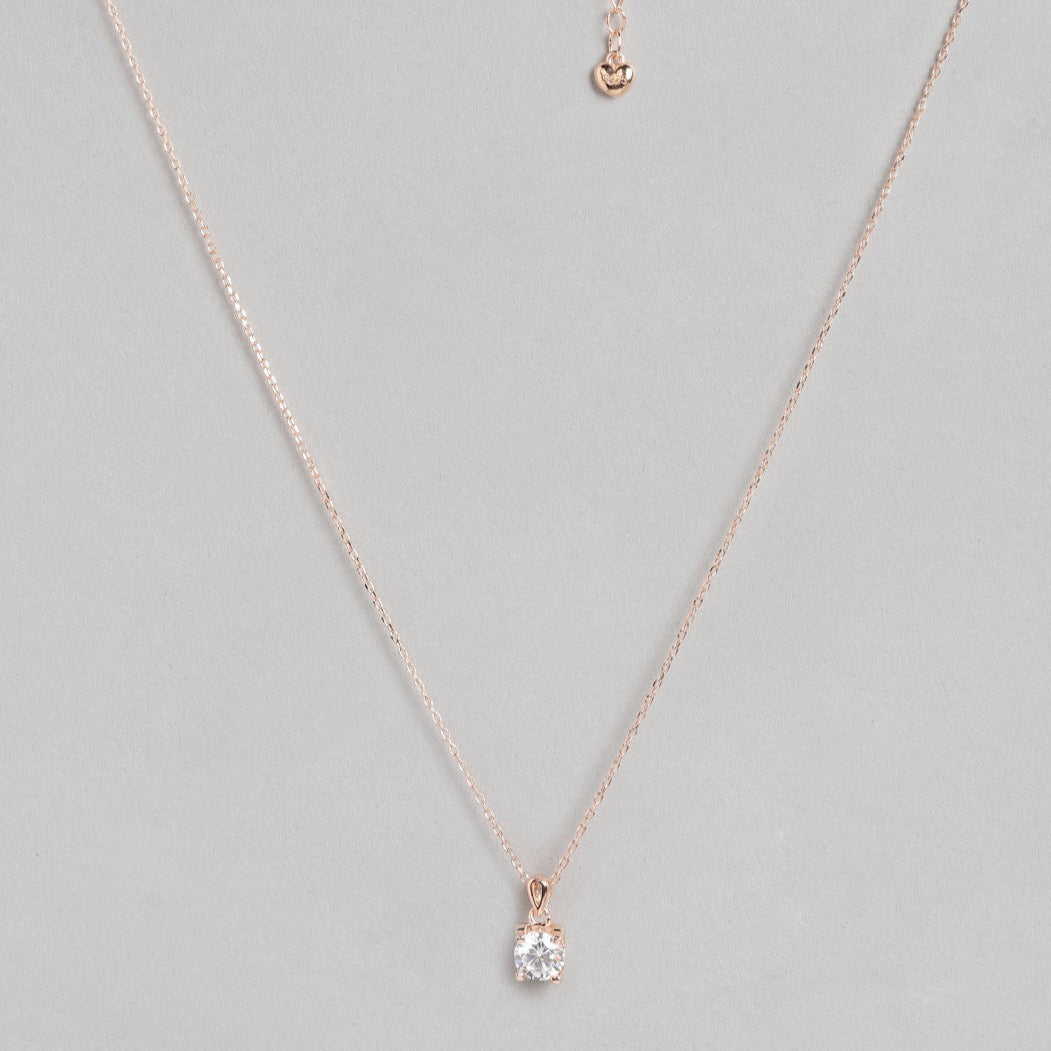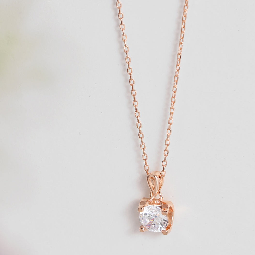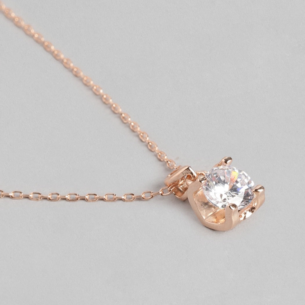 CZ Solitaire Rose Gold Plated 925 Sterling Silver Necklace
