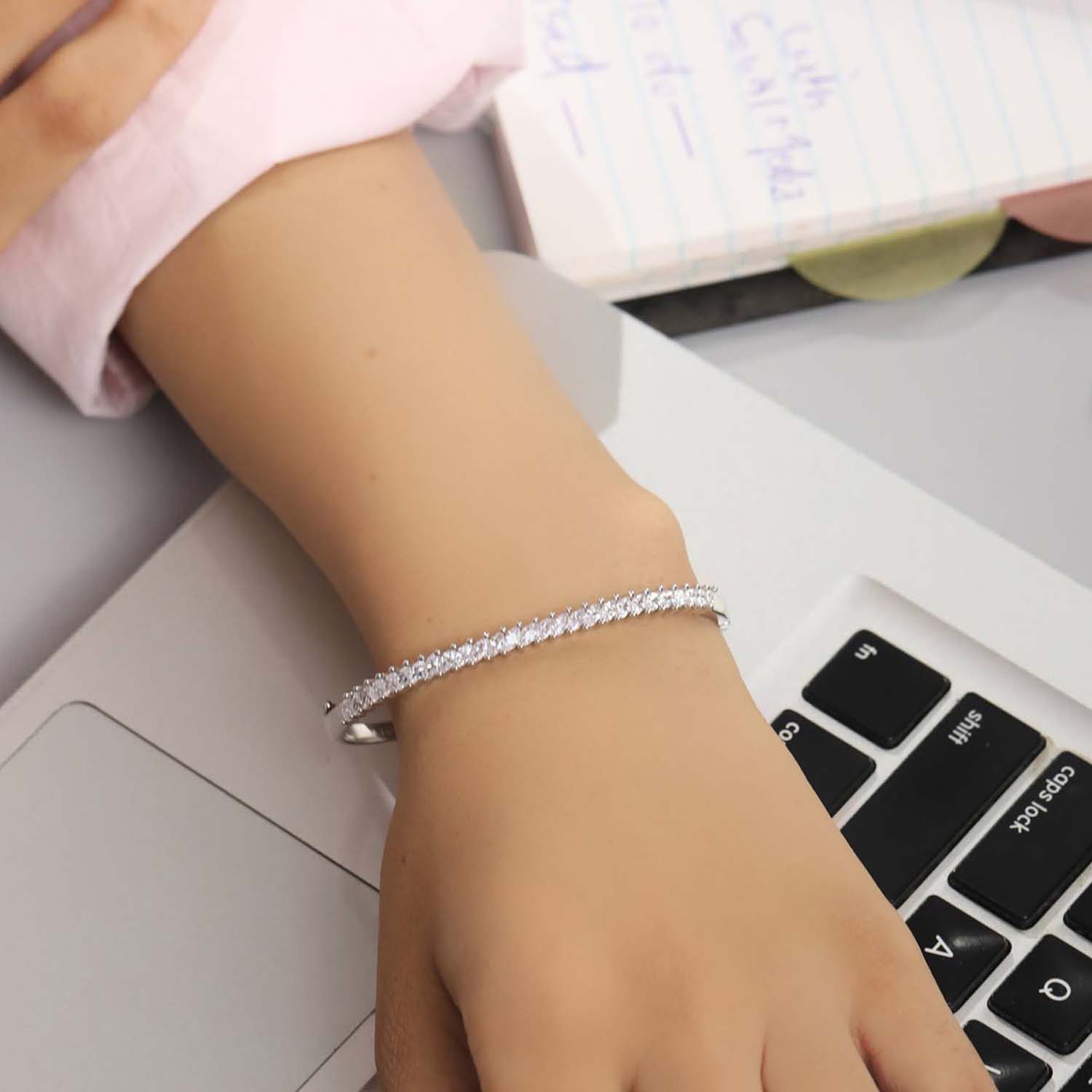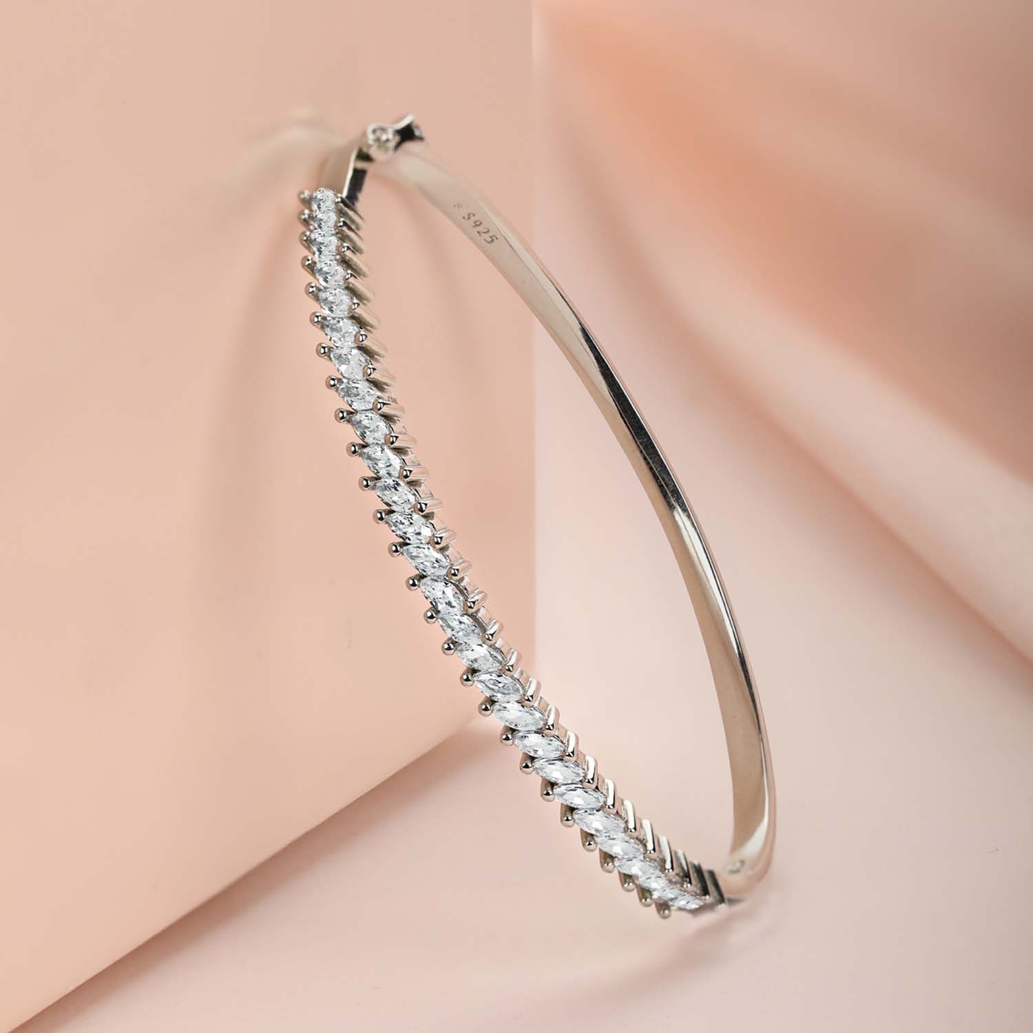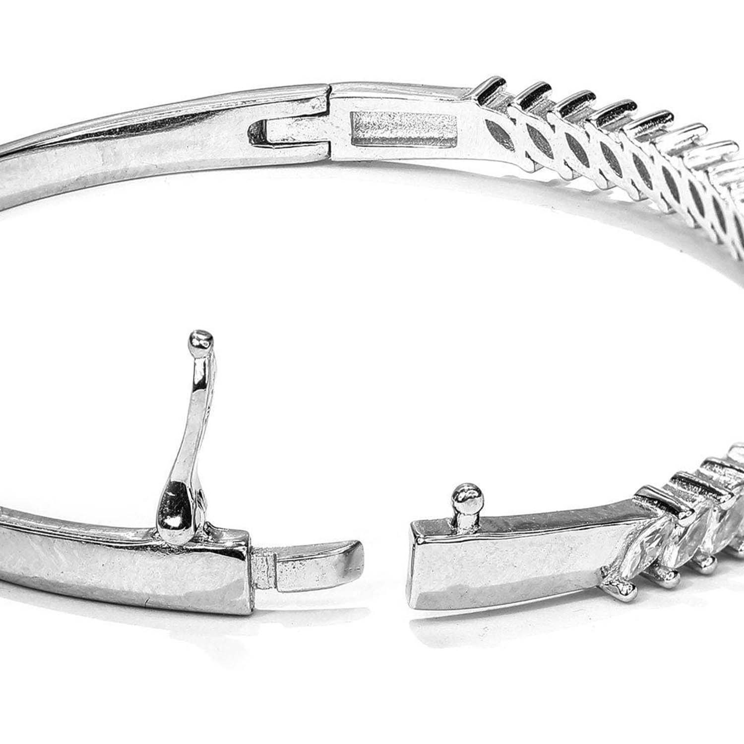 Product Description:- Leaf-patterned cubic zirconia in a captivating solitaire cut makes this a statement bracelet that will attract attention everywhere you go. Pair it with a cocktail dress and you will be ready for the party of a lifetime!