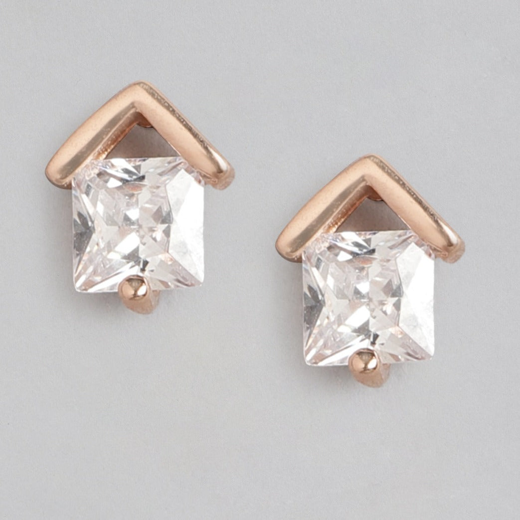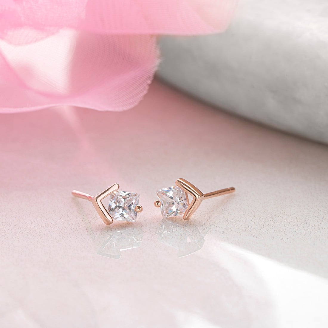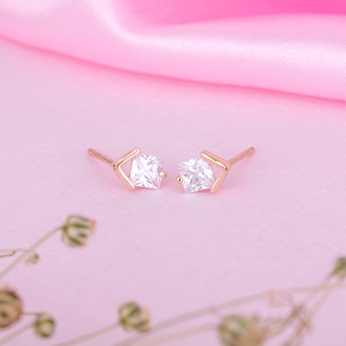 Square Rose Gold Plated 925 Sterling Silver Stud Earrings
